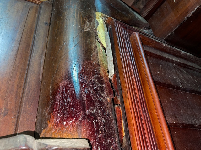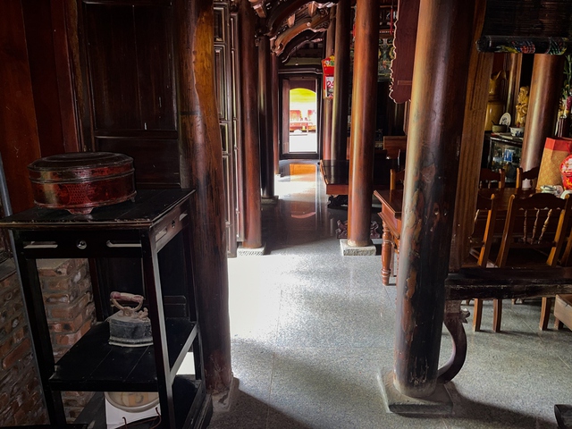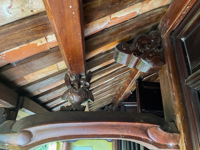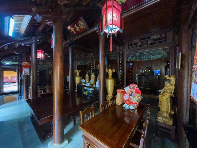 Với 36 cây cột lớn cùng hệ thống kèo, xà nhà... đã giúp ngôi nhà đứng vững theo năm tháng. Theo gia chủ, những đường nét hoa văn đẹp mắt được điêu khắc từ bàn tay của các nghệ nhân làng mộc Kim Bồng (TP.Hội An, Quảng Nam).