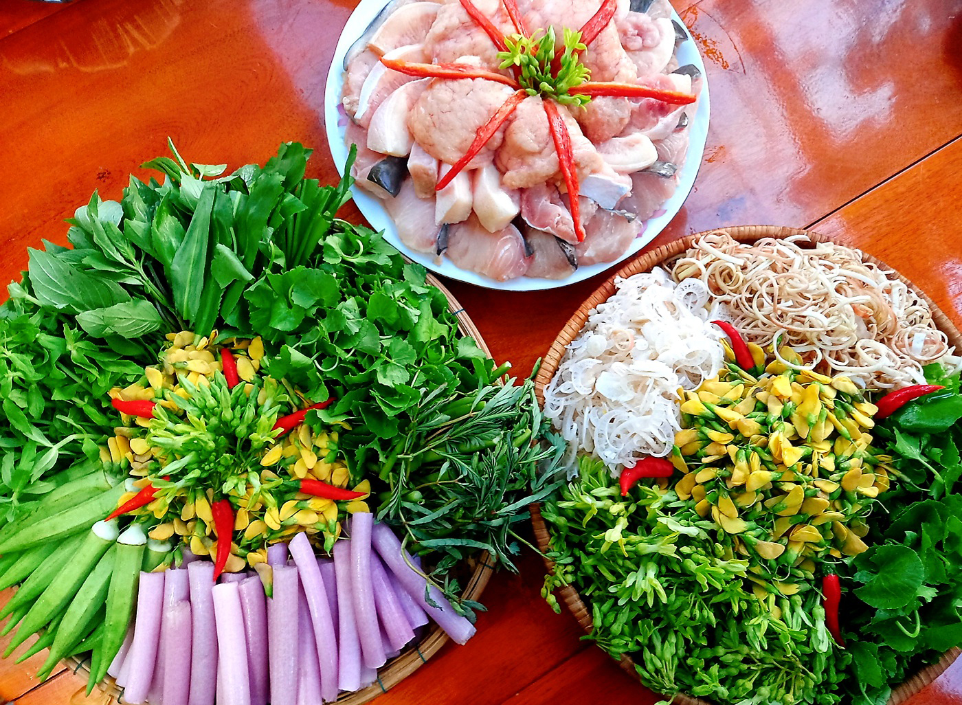 Món lẩu cá tra kích thích vị giác hơn khi ăn kèm các loại rau như bông chuối bào, bông súng, rau má, rau nhút, bông điên điển... Đợi lẩu sôi, bạn cho từng miếng thịt cá tra vào nồi, gắp miếng bún vào chén, chan nước dùng nóng rồi gắp từng miếng cá thơm béo và thưởng thức.