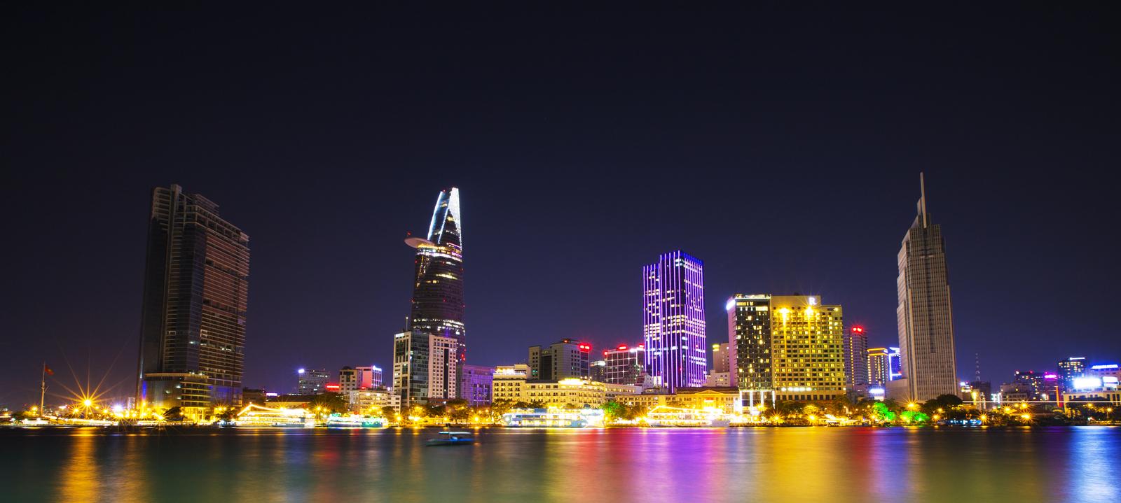 Toà nhà sáng đèn góp phần tạo nên bức tranh lung linh của TP HCM trong buổi tối. Ảnh: Trung Võ.