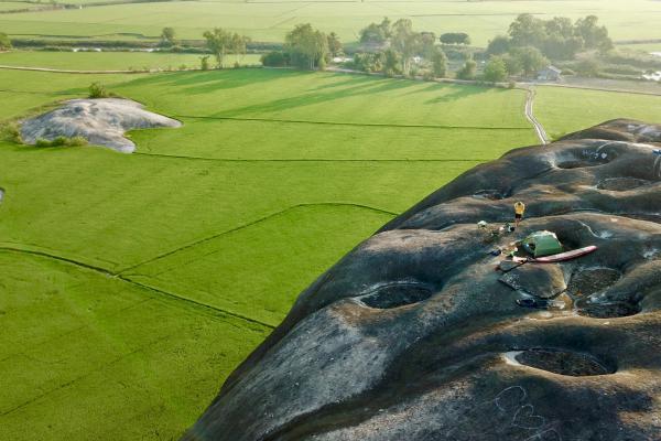 Núi đá hùng vĩ giữa cánh đồng lúa - Ảnh: LukapaulosCánh đồng lúa Phú Điền được biết đến là vựa lúa lớn nhất tỉnh Đồng Nai. Nơi đây có khí hậu trong lành, thích hợp cho du khách muốn tìm về cảm giác yên bình. Để đến ngọn núi cao chừng 150 m, du khách cần băng qua 2 km đường ruộng. Nếu tham gia leo núi, bạn nên sử dụng giày chuyên dụng để tránh trơn trượt.