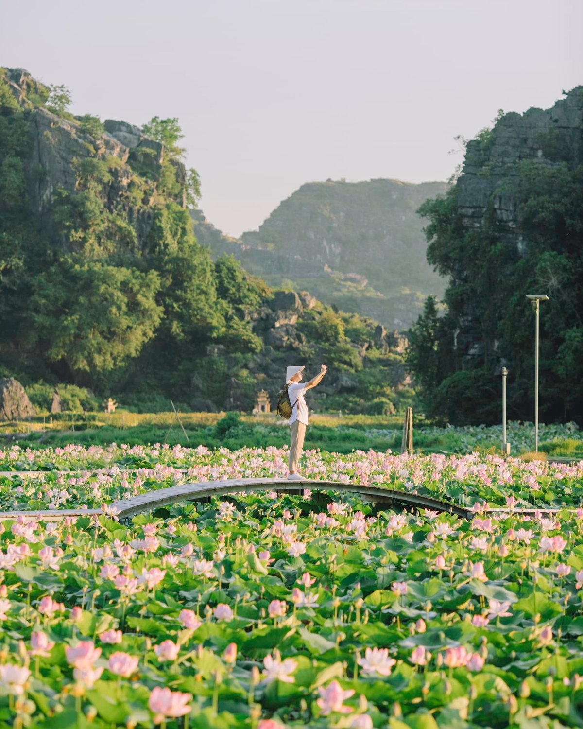 Du khách có thể hòa mình cùng thiên nhiên, ngắm sen đang vào mùa đẹp nhất và ăn các món từ sen ở Ninh Bình.
