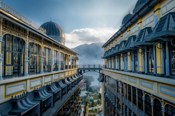 Trên ảnh là khách sạn Hotel de la Coupole - MGallery tại trung tâm thị xã Sa Pa (Lào Cai). Khách sạn được thiết kế bởi kiến trúc sư "phù thủy" Bill Bensley, với phong cách Pháp thượng lưu. Câu chuyện cảm hứng cho sáng tác là cuộc sống của người Pháp giữa dân tộc bản địa của Sa Pa như H’Mong, Dao, Xá Phó, Tày, Giáy... năm 1920-1930.