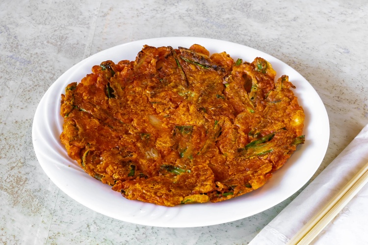 Chỉ với 3 nguyên liệu chính là kim chi, hành lá và bột mì là bạn sẽ có ngay món bánh kim chi “ăn một lần là ghiền”. Điểm hấp dẫn của loại bánh này nằm ở độ giòn tan và vàng óng của vỏ bánh. Cắn một miếng là sẽ cảm nhận được ngay vị cay cay của kim chi và mùi thơm của hành.
