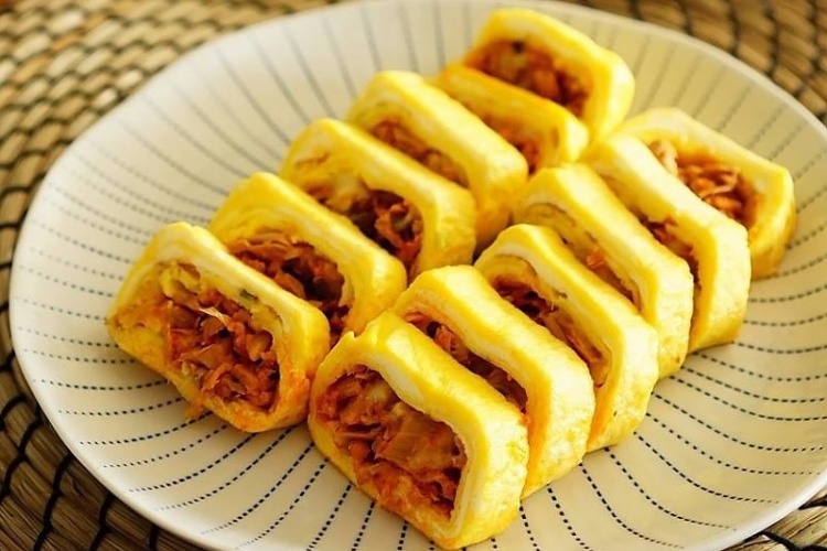Trứng tráng kim chi hay trứng chiên kim chi là một món vô cùng “bắt cơm” và dễ chế biến. Bạn có thể chiên trứng trực tiếp với kim chi hoặc dùng trứng chiên để cuộn kim chi. Vị chua cay của kim chi hòa quyện với vị béo của trứng đảm bảo khiến bạn muốn thưởng thức mãi không thôi.