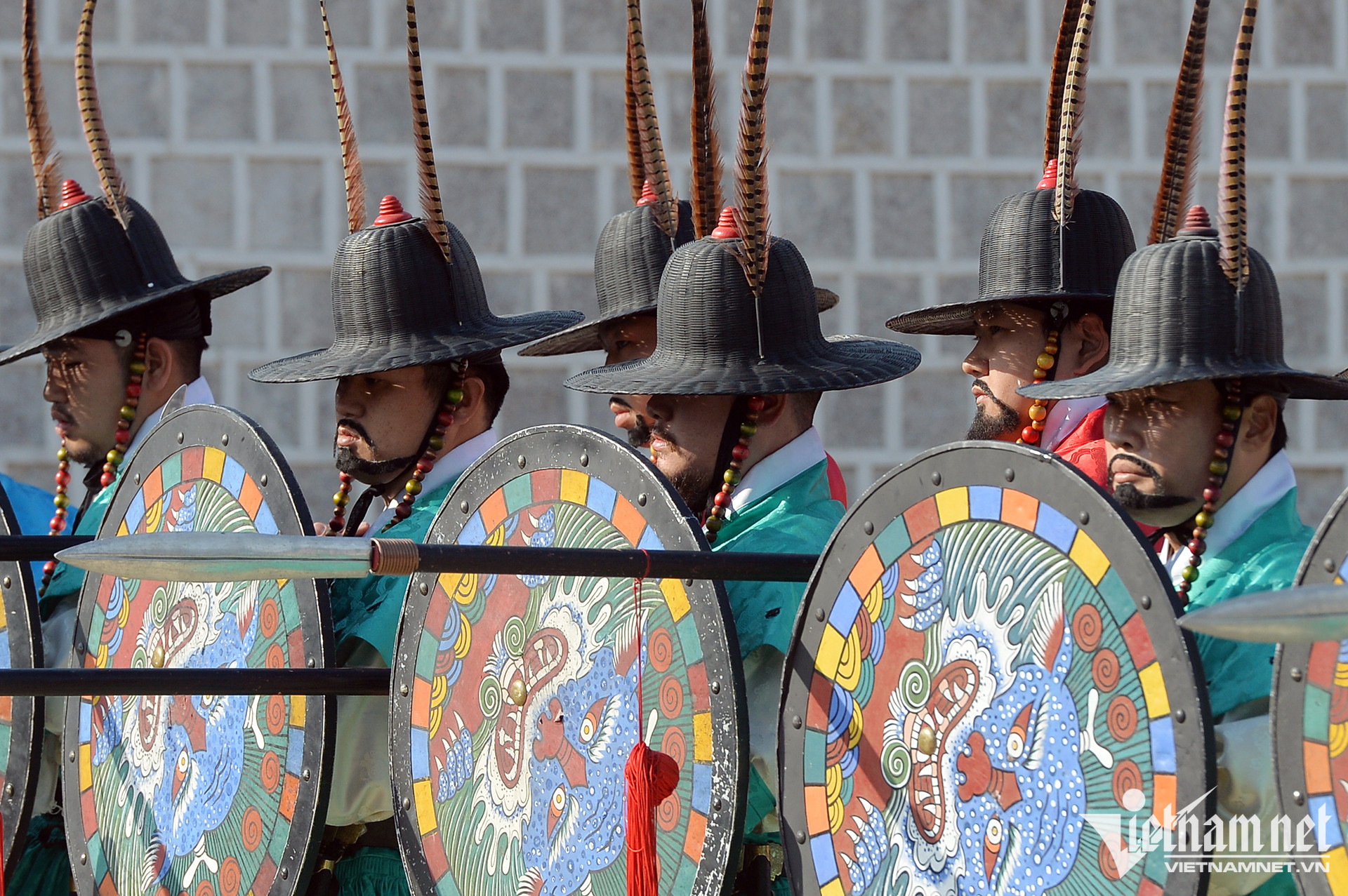 Nghi lễ đổi gác kiểu Hoàng gia ở Cung điện Gyeongbokgung Palace, Seoul (Hàn Quốc) diễn ra hai lần mỗi ngày, thu hút rất đông du khách quốc tế đón xem.