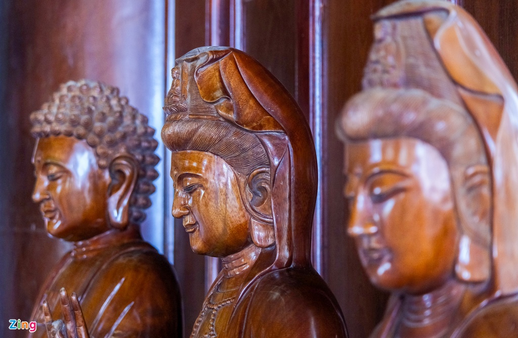 Tượng Phật Bồ Tát bằng gỗ được tạo hình tinh xảo.
