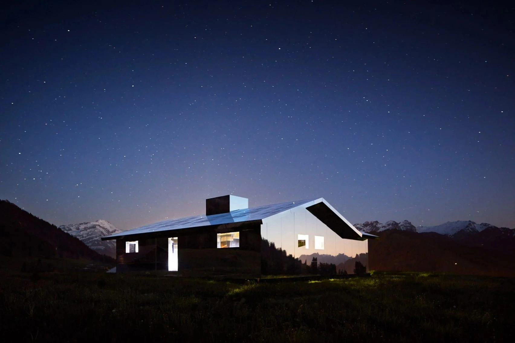 Từ một số góc độ, Mirage Gstaad dường như là một phần của thiên nhiên. Khi chìm đắm vào nó, du khách khó có thể phân biệt được đâu là cảnh thật, đâu là hình ảnh phản chiếu trong gương. Ảnh: Luma Foundation.