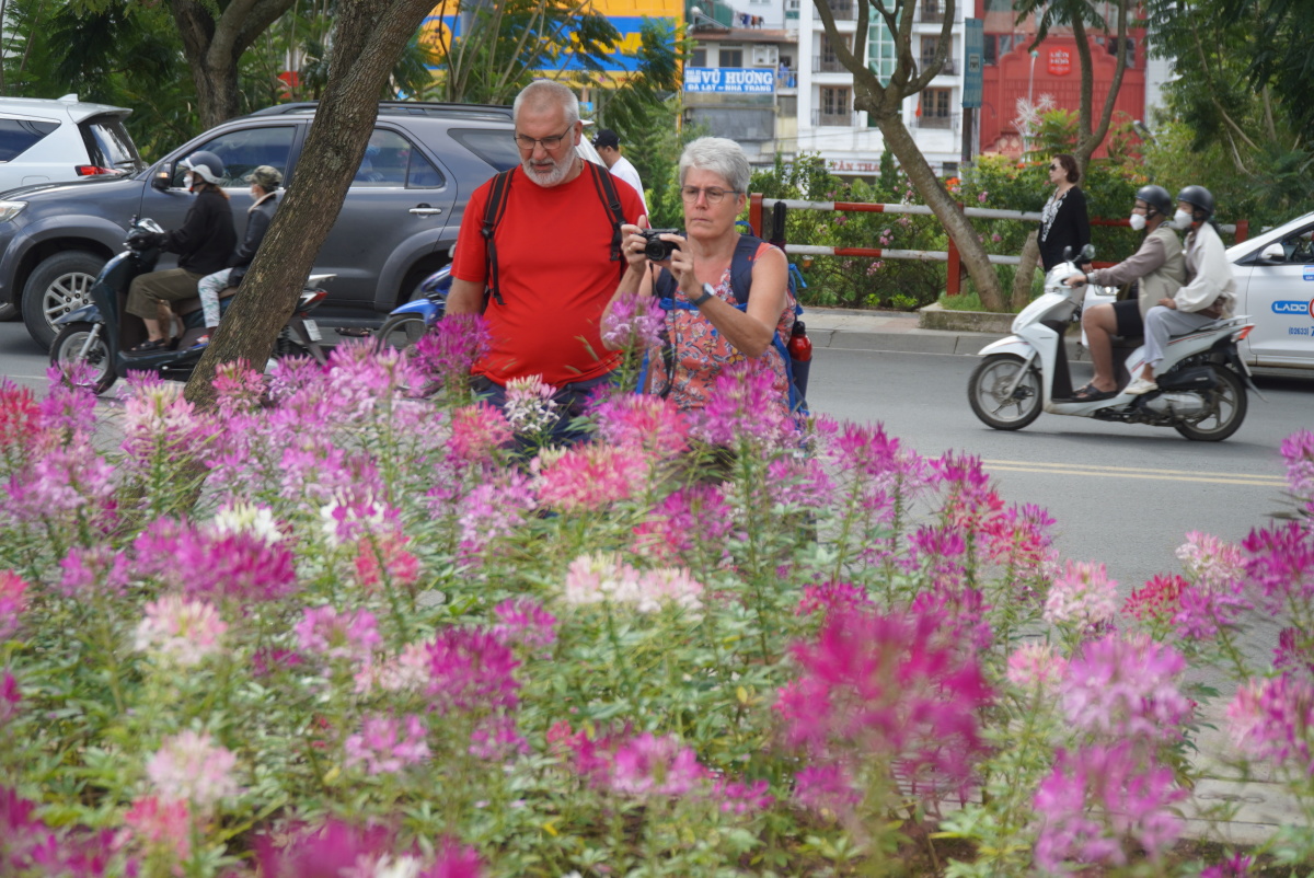 Du khách nước ngoài cũng ghi lại những hình ảnh đẹp của vườn hoa giữa trung tâm thành phố.