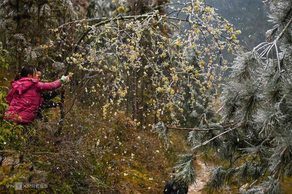 Những bông hoa đào còn lại cũng bị đóng băng. Từ sau Tết, trên cao nguyên đá Đồng Văn vẫn còn khá nhiều hoa đào nở.