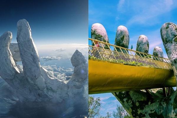 Cầu Vàng ở Đà Nẵng được khánh thành vào năm 2018, với thiết kế hình đôi bàn tay khổng lồ đang nâng đỡ một con đường vòng cung dài 150 m. Cây cầu từng được báo Anh bình chọn là một trong 7 kỳ quan mới của thế giới. Ngoài ra, đôi bàn tay ở Cầu Vàng từng được nhiều blogger du lịch lấy làm chủ đề sáng tạo, như thêu dệt nhiều câu chuyện bí ẩn, hoặc so sánh với bàn tay của người ngoài hành tinh.