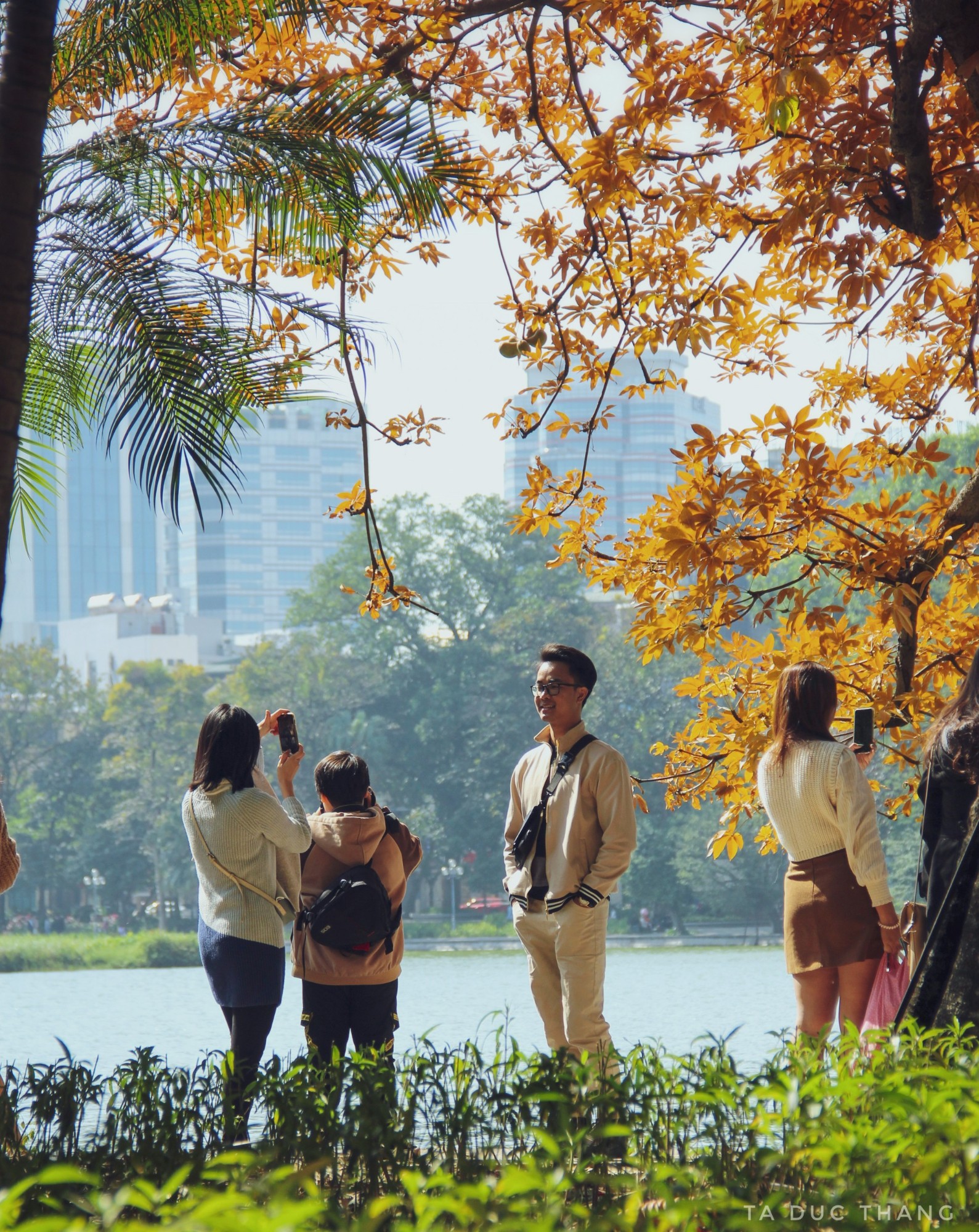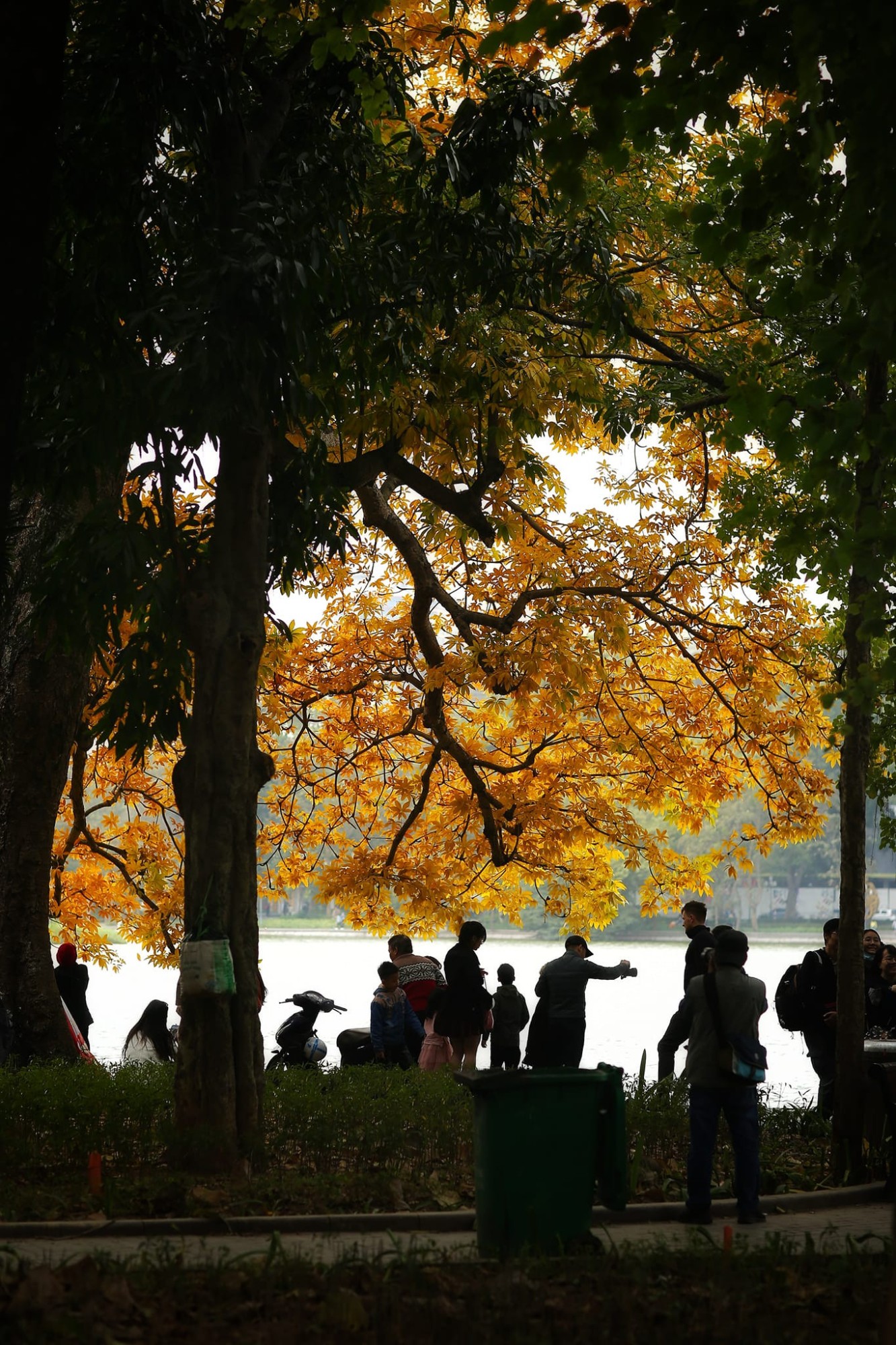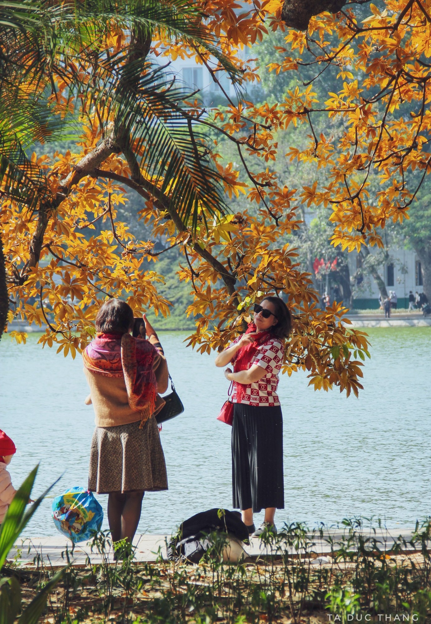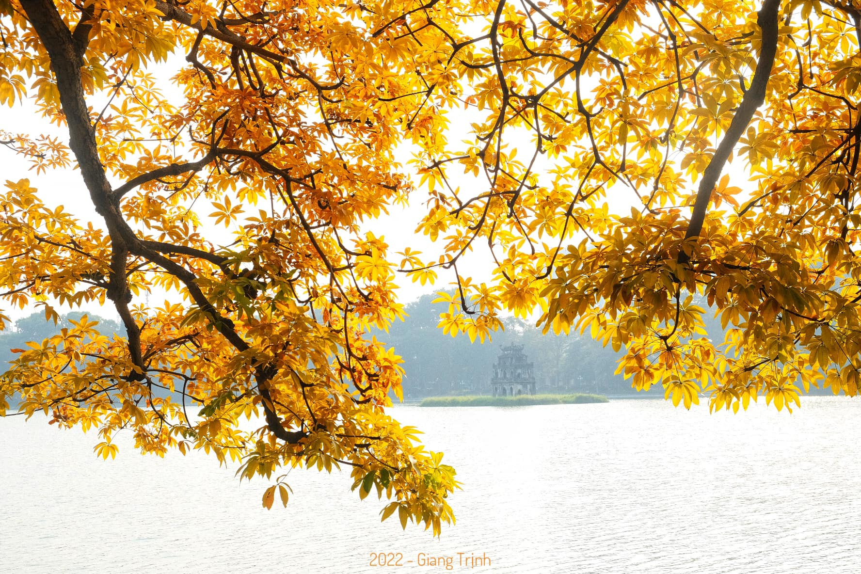 Cây mõ thay màu lá tạo nên khung cảnh rực rỡ nhưng không kém phần thơ mộng - Ảnh: Giang TrịnhChia sẻ cảm nhận của mình về cây mõ Hồ Gươm, nhiếp ảnh gia Trịnh Xuân Giang tâm sự: “Mình bắt đầu chụp cây mõ ngay từ những ngày đầu gắn bó với chiếc máy ảnh, tức là khoảng 15 năm trước. Vào mùa xuân cây mõ ra hoa, mùa đông lá sẽ chuyển sang màu vàng. Đây cũng là 2 thời điểm đẹp nhất của cây.