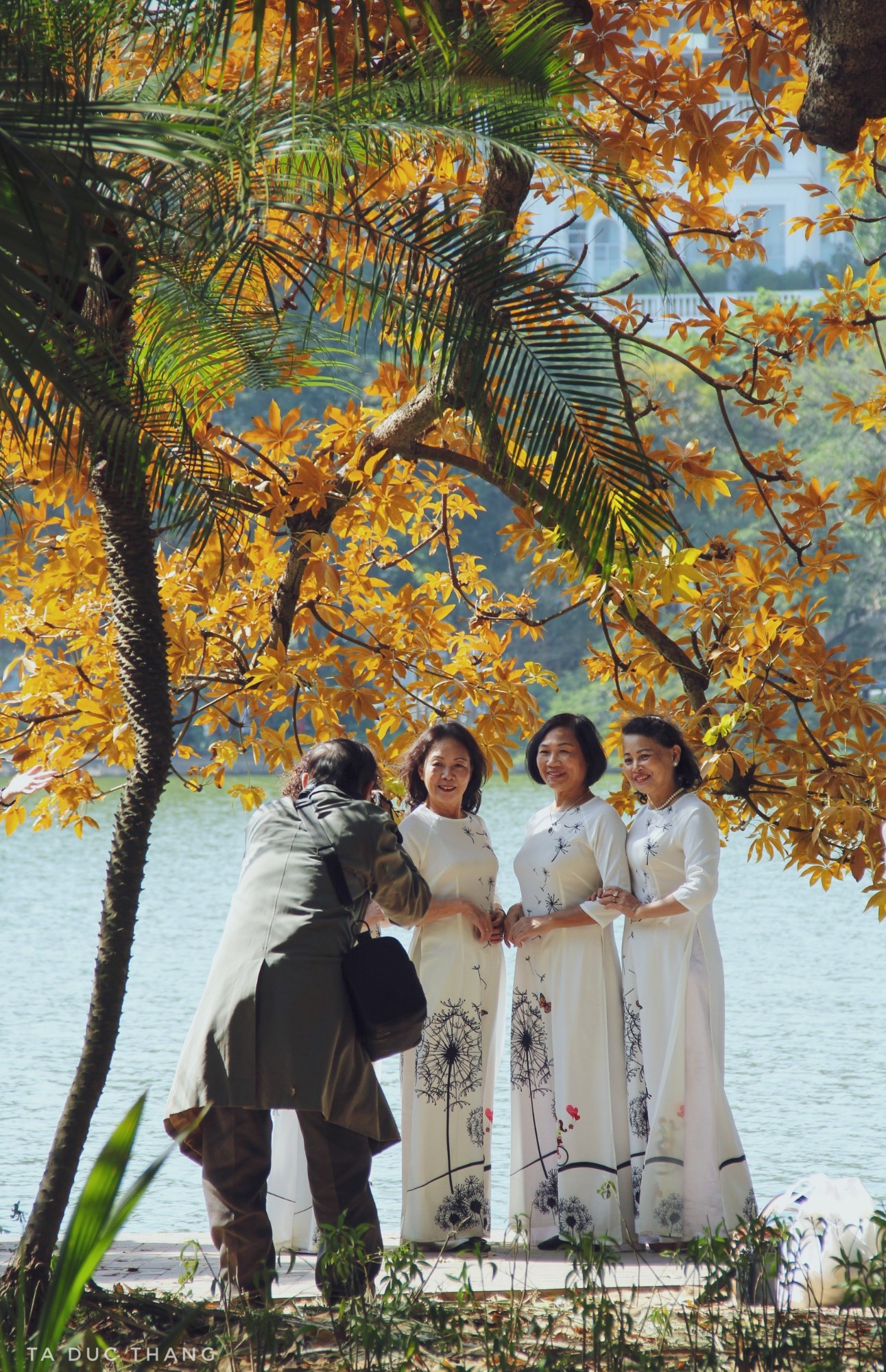 Tà áo dài thướt tha trong những tấm ảnh kỷ niệm với cây mõ Hồ Gươm - Ảnh: Tạ Đức Thắng