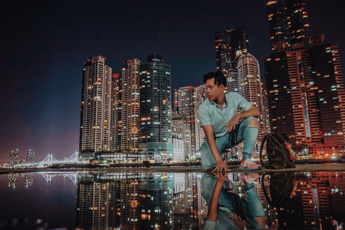 Thế Anh chụp ảnh trước The Bay 101 ở Busan, Hàn Quốc. Thế Anh đã gắn bó với nghề giảng viên được 7 năm, song luôn dành thời gian cuối tuần để đi du lịch và chia sẻ lại kinh nghiệm cho mọi người. Tùy vào mức độ công việc trải qua trong một tuần, anh sẽ nghỉ dưỡng để kích hoạt lại năng lượng cho cơ thể hay trải nghiệm các hoạt động mạo hiểm để vận động.