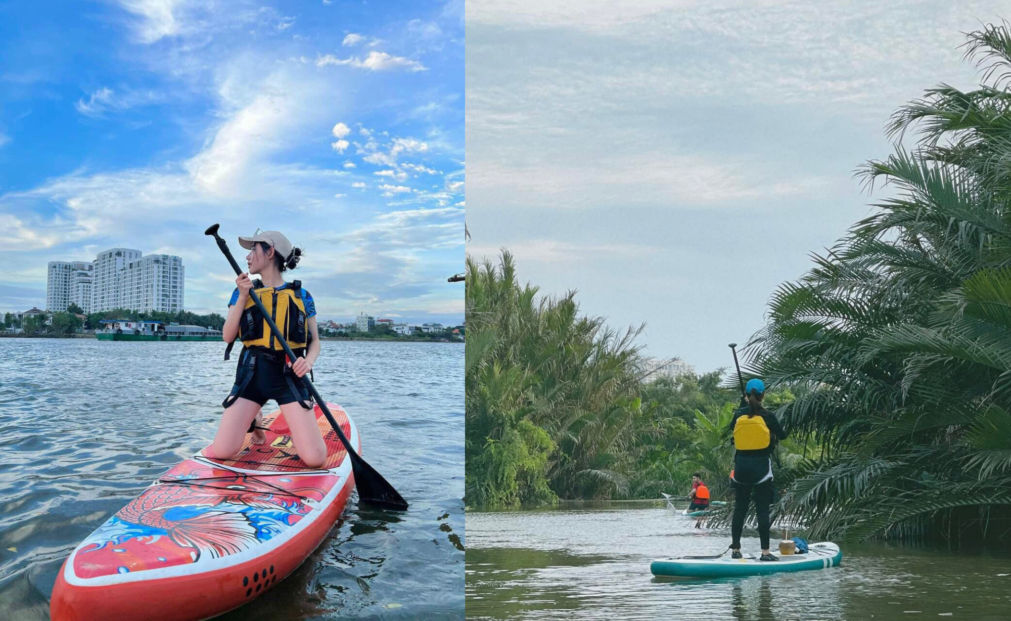 Chèo SUP mang đến nhiều trải nghiệm lý thú cho Phương Trinh. Ảnh: Riri Phương Trinh. Riri Phương Trinh (25 tuổi), người thường xuyên tham gia chèo SUP, cho biết những hoạt động ngoài trời gần gũi với thiên nhiên, sông nước được nhiều người quan tâm vào mùa hè, trong đó có chèo SUP.