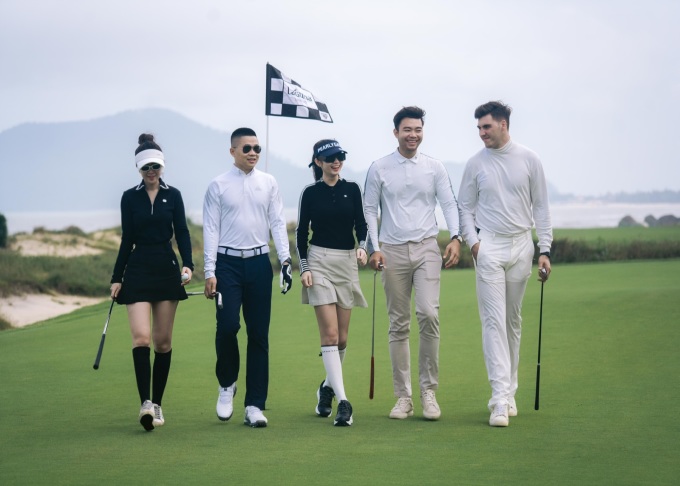 Ryan Hiếu Trần (áo trắng, thứ 2 từ phải sang) đánh golf ở resort Bayan Tree Lăng Cô. "Từ khi dịch thì các resort giảm giá sâu hạng phòng cao cấp khoảng 50-60% so với giá trước đây", Hiếu chia sẻ về cơ hội này. Ban đầu, anh trải nghiệm với gia đình, sau đó "nghiền" nên hay đi cùng bạn bè ở các chuyến sau. Với mỗi lần đi, anh chi khoảng 60-70 triệu đồng, sau khi đã chia đầu người.