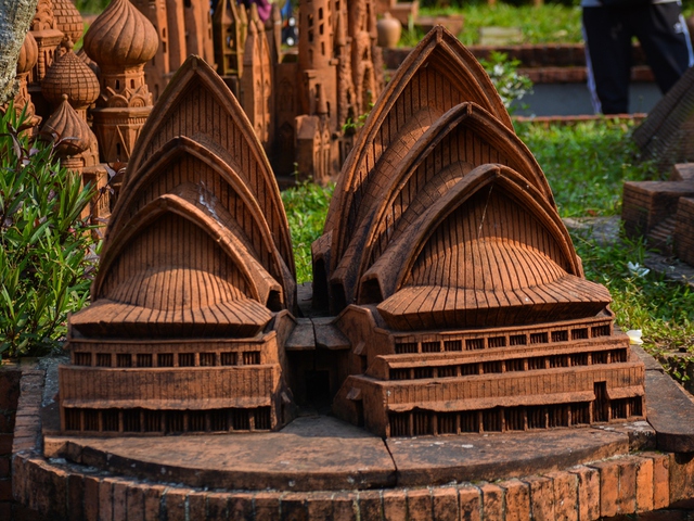 Mô hình phố cổ Hội An thu nhỏCông trình được xây dựng bằng gốm, có màu cam đặc trưng của làng gốm Thanh Hà. Du khách khi dạo chơi tại khu vực này đều cảm nhận được sự tinh tế, sắc sảo trong từng sản phẩm được tạo ra.