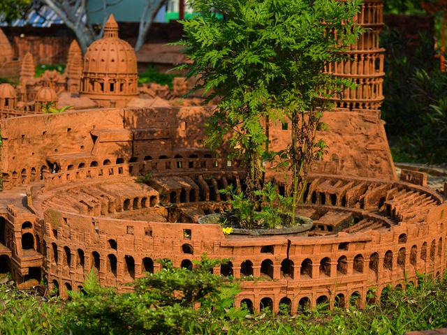 Đấu trường La Mã ở thành phố Roma, nước Ý Theo anh Nam, công trình thế giới thu nhỏ làm bằng gốm được tạo nên bởi bàn tay khéo léo, điêu luyện của các nghệ nhân có dày dặn kinh nghiệm. Ông Lê Ngọc Tuấn, nghệ nhân nổi tiếng ở làng gốm Thanh Hà, đã chế tác nhiều công trình thu nhỏ từ bàn tay "ma thuật" của mình.