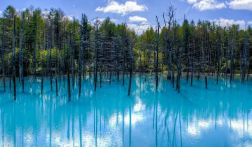 Nằm cách xa các điểm du lịch trung tâm của Hokkaido (Nhật) nhưng hồ xanh (Blue Pond) ở Biei lại là điểm đến yêu thích của những nhiếp ảnh gia. Khu vực này trở nên nổi tiếng hơn nhiều khi bức hình của nghệ sĩ Kent Shiraishi được hãng Apple chọn làm màn hình desktop.