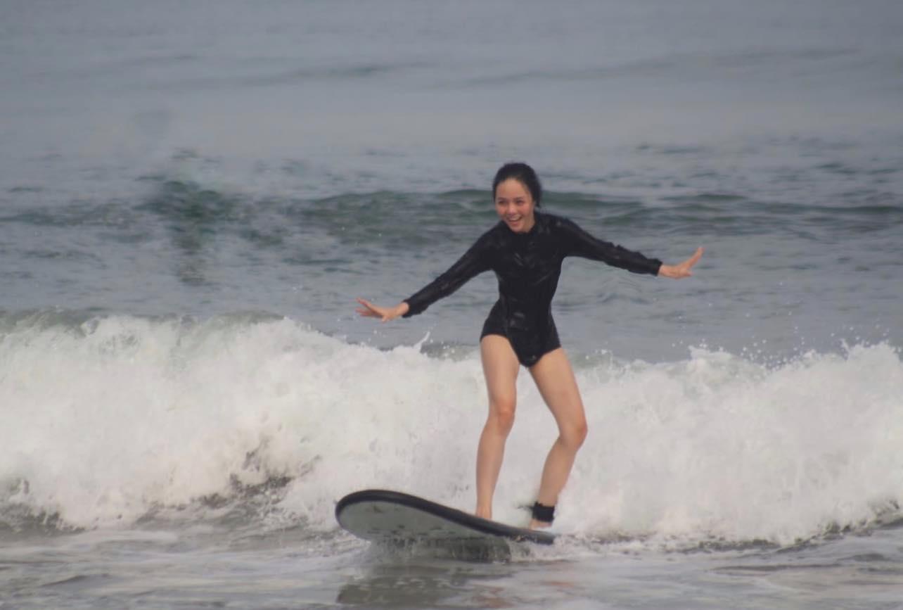 "Mình bị nhức cơ tay, vai trong khoảng một tuần sau chuyến đi nhưng nếu có cơ hội, mình muốn trải nghiệm một khóa học ba tháng để có thể lướt sóng một cách tự tin hơn", Trang chia sẻ.