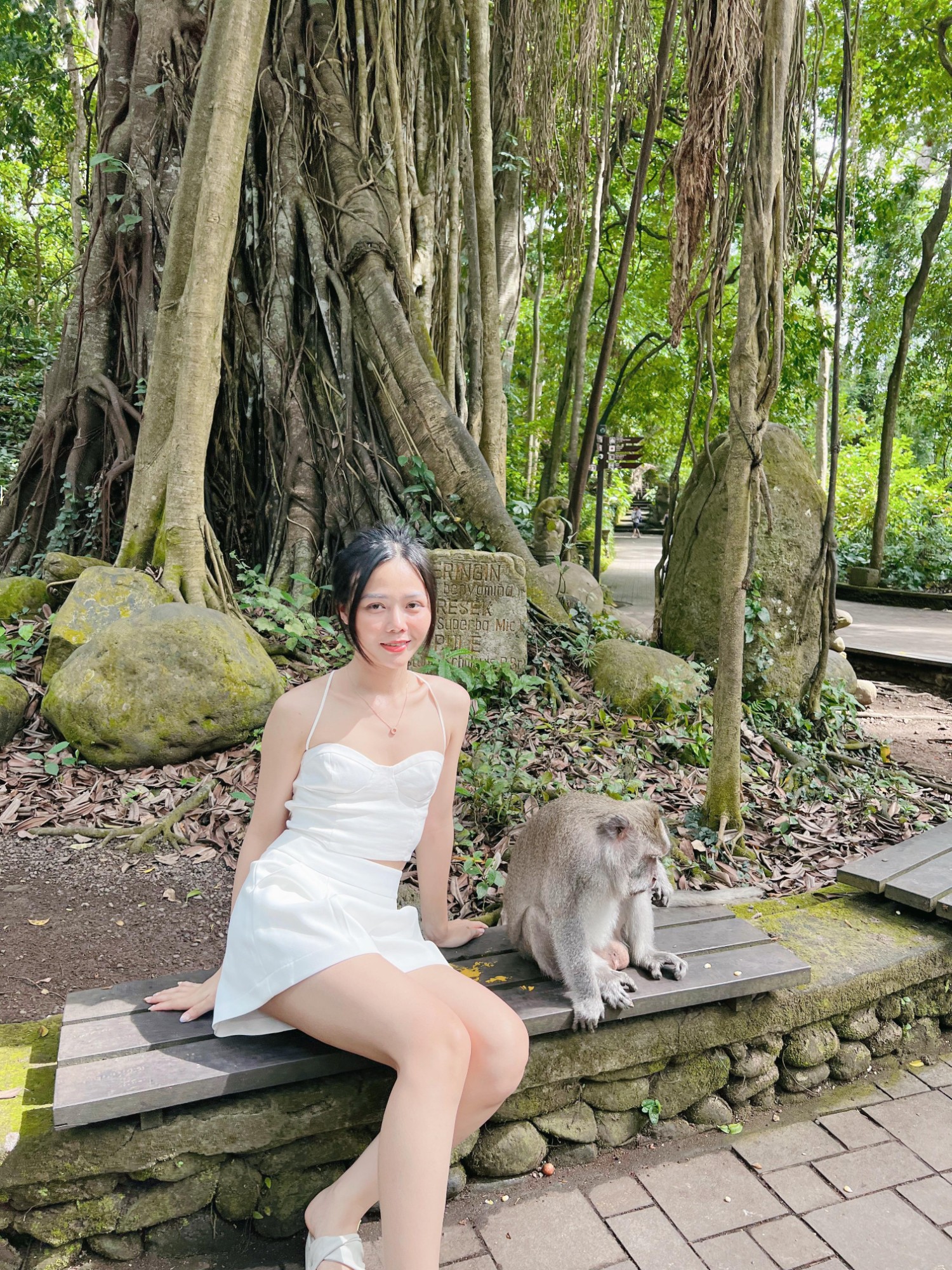 Nữ du khách Việt thích thú khi ghé thăm đảo khỉ, khu vực bảo tồn hơn 100 giống khỉ khác nhau 16h chiều, Trang di chuyển về sân bay.