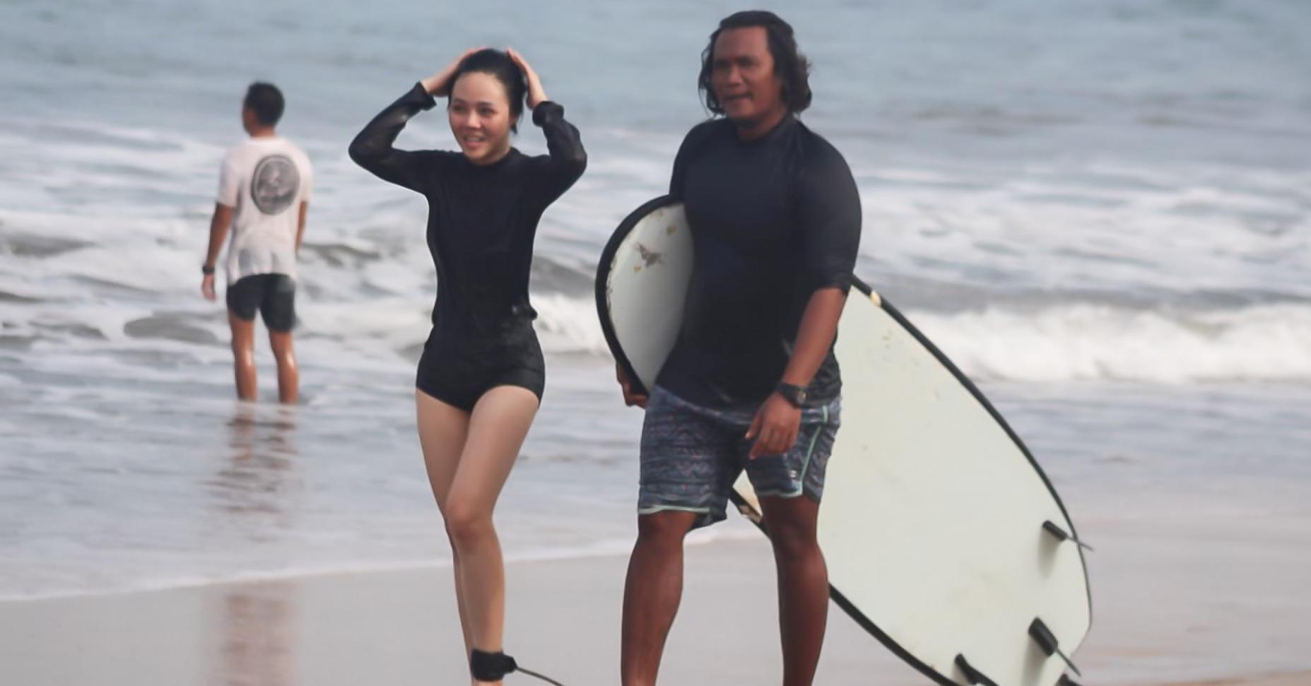 Trong 4 ngày 3 đêm khám phá Bali (Indonesia), Hoàng Trang đã dành thời gian tham gia lớp học lướt sóng. Sau nhiều lần uống nước biển, bị ván đập vào người, cô đã có thể đứng trên ván khoảng 20 giây.