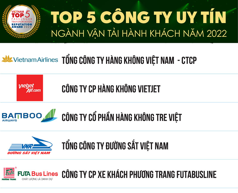 Ngày 07/12/2022, Công ty cổ phần Báo cáo Đánh giá Việt Nam (Vietnam Report) chính thức công bố Top 10 Công ty Du lịch và Top 5 Công ty Vận tải hành khách uy tín năm 2022.