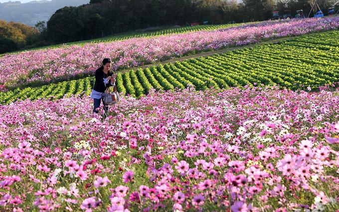Khách du lịch thường đi dạo lang thang dọc theo những con đường nhỏ bên những luống hoa và chụp ảnh.