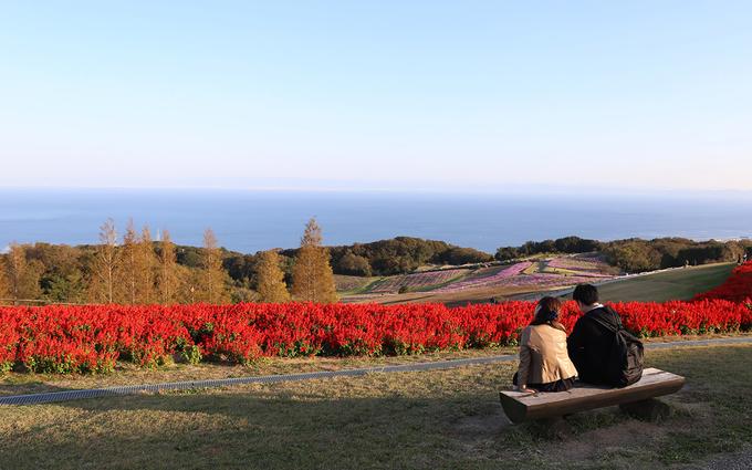Công viên hoa trải dài hàng nghìn m2 bên vịnh Osaka nên du khách không chỉ ngắm hoa mà còn có thể thưởng ngoạn phong cảnh vịnh.