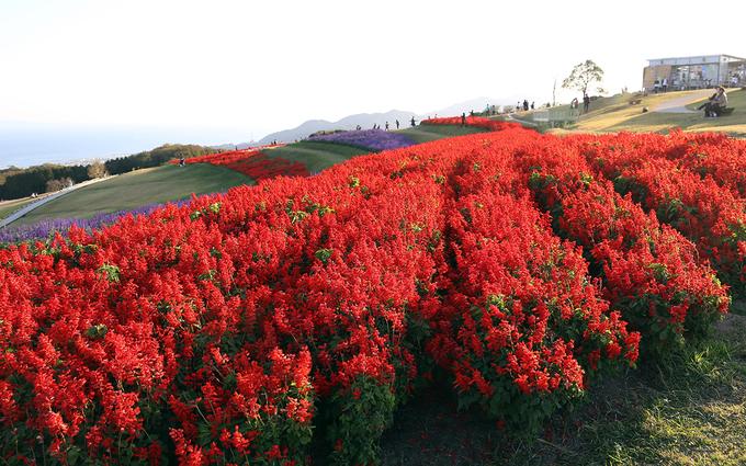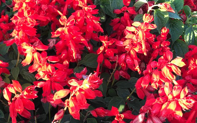 Hoa salvia đỏ rực rỡ dưới ánh mặt trời. Điểm đặc biệt là du khách đến công viên hoa không mất tiền vé vào cũng như miễn phí đỗ xe.