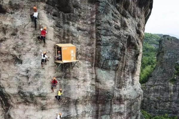 Cửa hàng đặc biệt nằm treo trên vách núi đá cao thẳng đứng thuộc khu vực Công viên Địa chất Quốc gia Shiniuzhai, tỉnh Hồ Nam, Trung Quốc. Để đến được đây, khách hàng phải leo lên độ cao khoảng 120 m, theo Insider.