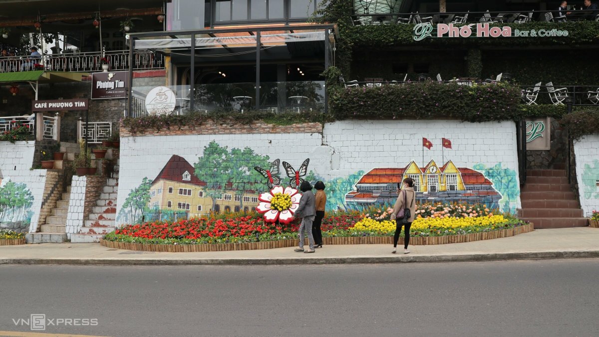 Nhiều bức tường, taluy được các hoạ sĩ tô vẽ thành những công trình kiến trúc nổi tiếng Đà Lạt, đây là một trong những điểm mới của Festival hoa năm nay.
