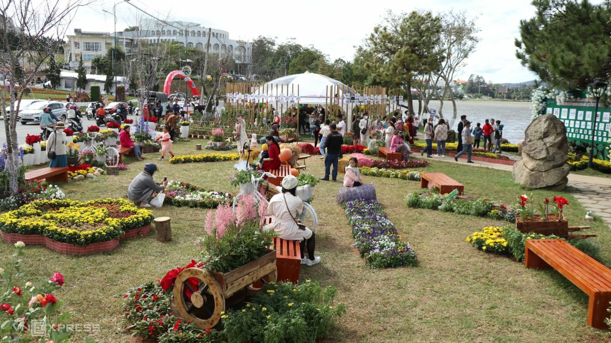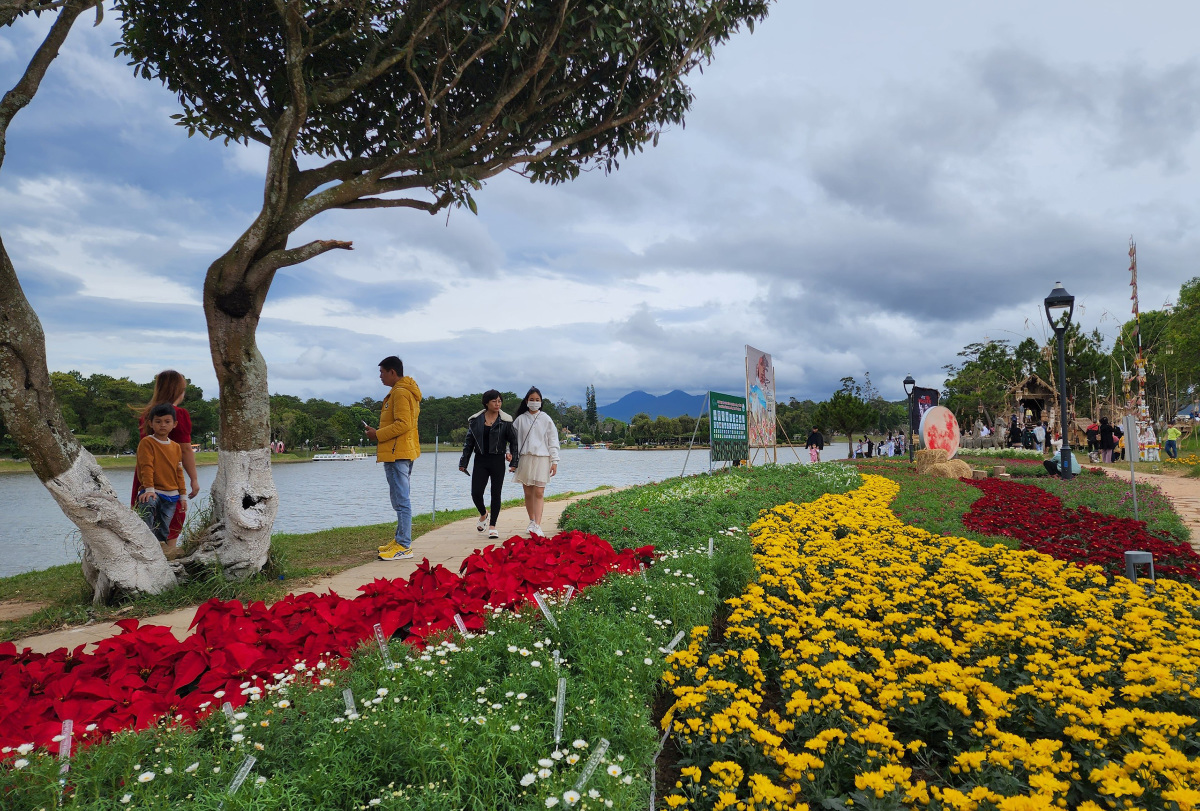 Ở ven hồ Xuân Hương, nhiều tiểu cảnh hoa được TP Đà Lạt đầu tư. "Hai năm rồi do dịch Covid-19 nên tôi không đến Đà Lạt, lần này ghé đúng dịp lễ hội hoa nên thấy rất thích với các không gian hoa ở đường phố, ven hồ", chị Trần Thị Thùy Dung, du khách đến từ Hà Nội, cho biết.