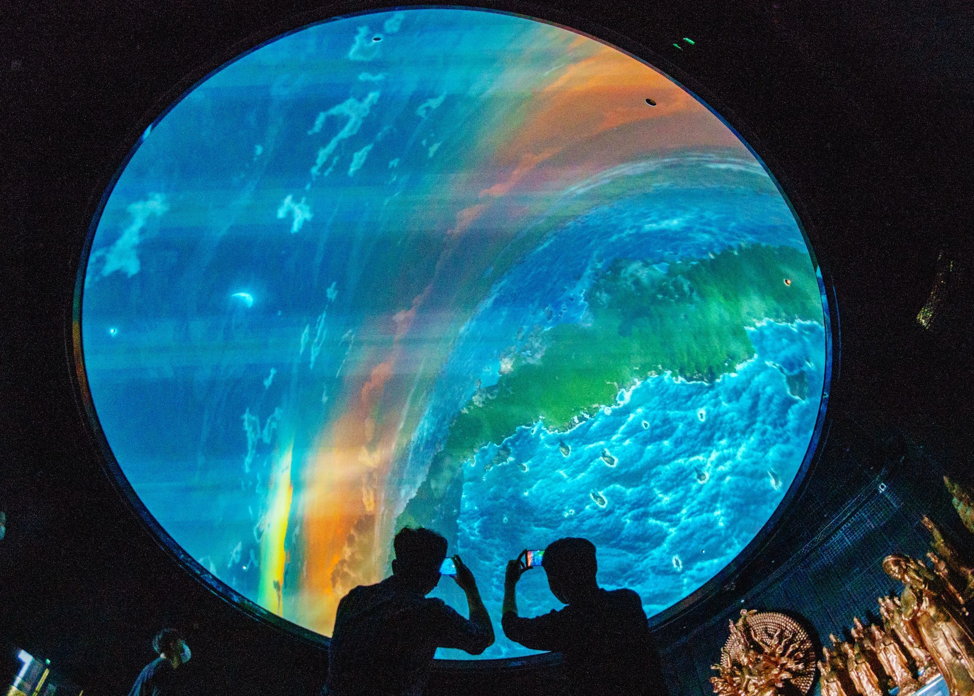 Tại đây, du khách sẽ được khám phá thế giới Phật giáo thông qua nhiều ứng dụng công nghệ hiện đại tại khu triển lãm Phật giáo ở khối đế 4 tầng dưới chân đại tượng Phật. Tại tầng 1, công nghệ chiếu phim video mapping với các thiết bị trình chiếu, âm thanh hiện đại hàng đầu thế giới sẽ là hành trình khám phá vũ trụ độc đáo dưới góc nhìn Phật giáo. Tầng 2 là nơi trưng bày mô hình 16 ngôi chùa cổ nổi tiếng tại Việt Nam thông qua 16 thiết bị trình chiếu Hologram hiện đại, tạo ra ảnh ba chiều lơ lửng trong không khí. Tầng 3 là không gian trưng bày các phiên bản mô phỏng những tác phẩm nghệ thuật Phật giáo kinh điển của Việt Nam và thế giới. Tầng 4 nơi lưu giữ và trưng bày xá lợi Phật được các cao tăng Myanmar trao tặng tổ đình Vĩnh Nghiêm và được tổ đình cúng dường Tượng Phật bà Tây Bổ Đà Sơn.
