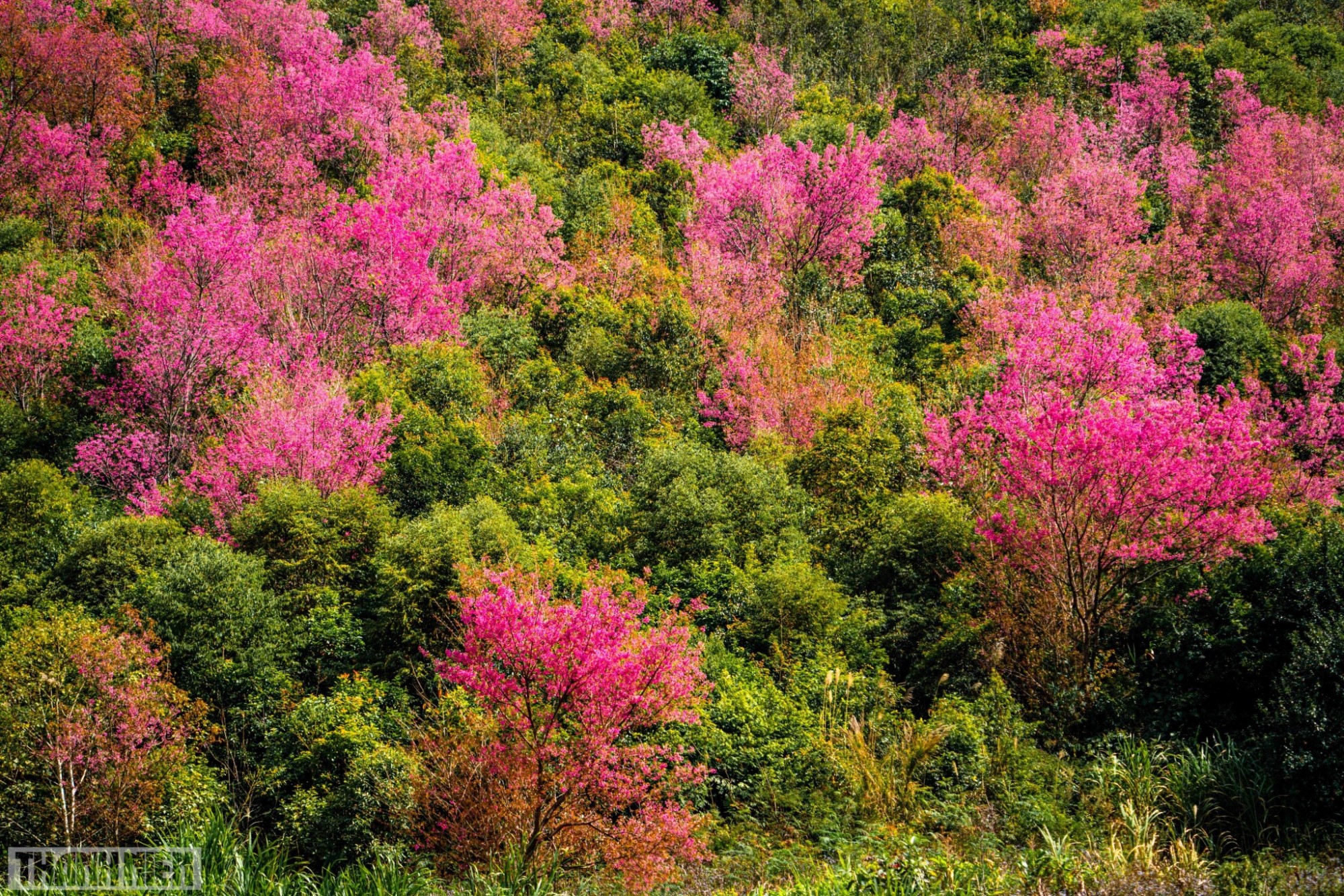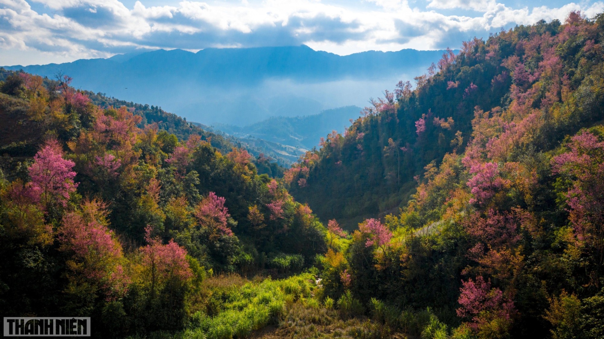 Dù chỉ là đóa hoa bé nhỏ nhưng khi cùng nhau nở, những cây đào rừng phủ hồng một vạt sườn núi