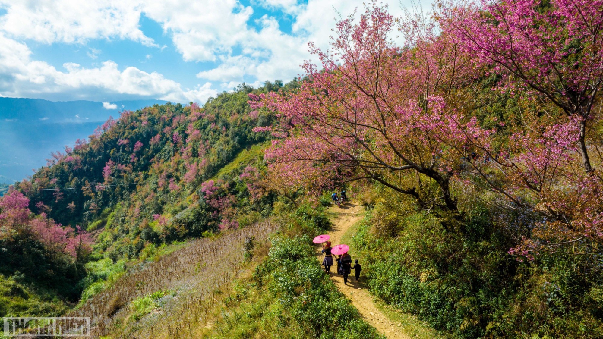 Từng vạt núi ngọn đồi trên vùng cao Mù Cang Chải, đào rừng bung nở rực rỡ, nhuộm hồng một vùng trời, báo hiệu mùa đông sắp qua và xuân đang về ở Tây Bắc.