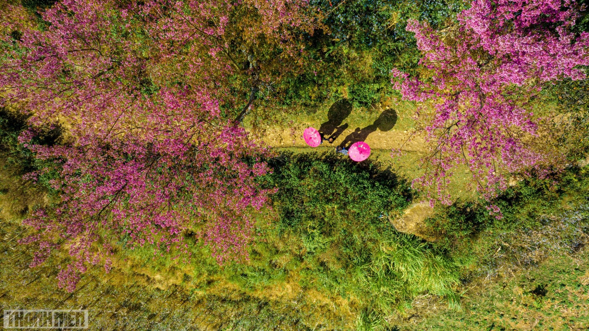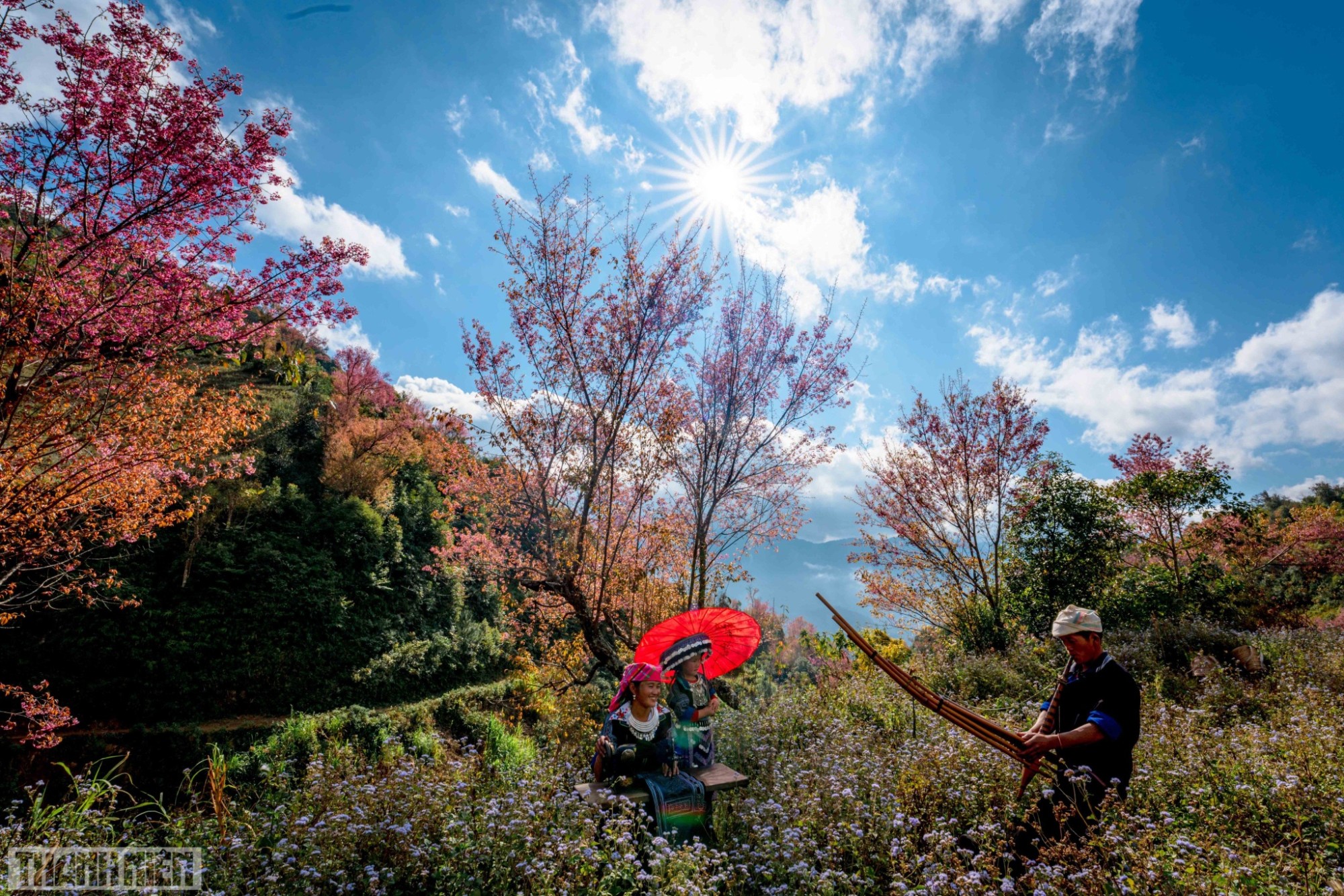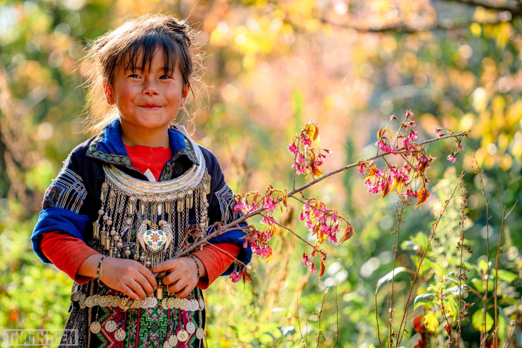 Đến đây, không khó để bắt gặp hình ảnh những cô bé, cậu bé người Mông với đôi má đỏ hồng, khoác trên mình bộ trang phục truyền thống rực rỡ, vô tư vui đùa dưới những tán hoa
