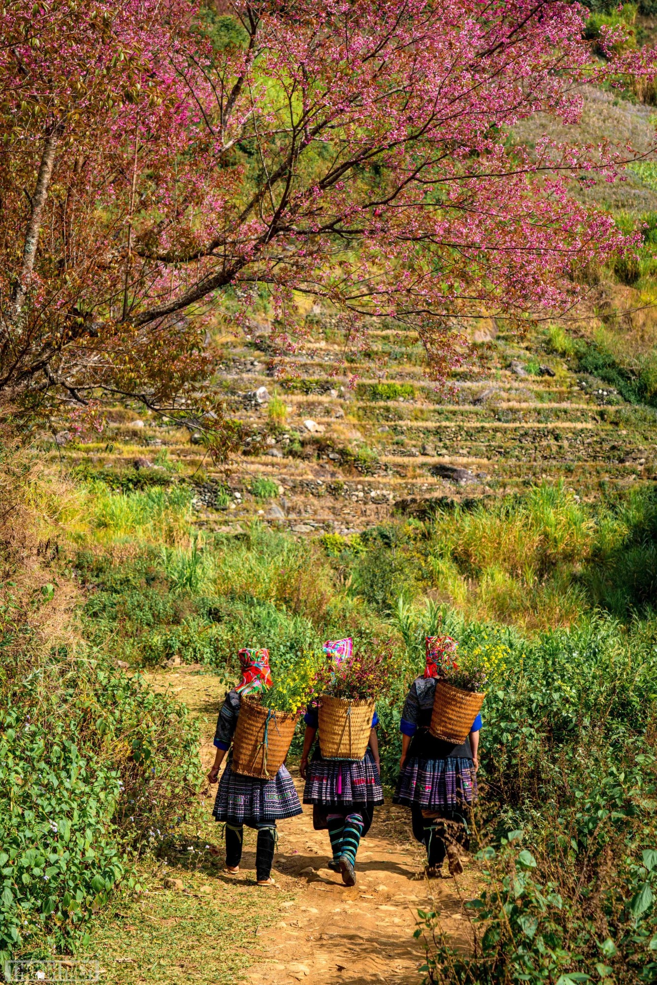 Mù Cang Chải (Yên Bái) không chỉ thu hút lữ khách phương xa với hình ảnh ruộng bậc thang vàng ươm đẹp như tác phẩm nghệ thuật sắp đặt, nơi này còn lộng lẫy mỗi khi xuân về cùng mùa hoa tớ dày khoe sắc.