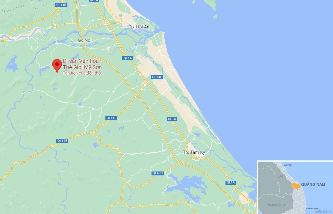 Khu đền tháp Mỹ Sơn ở huyện Duy Xuyên, Quảng Nam. Ảnh: Google Maps.