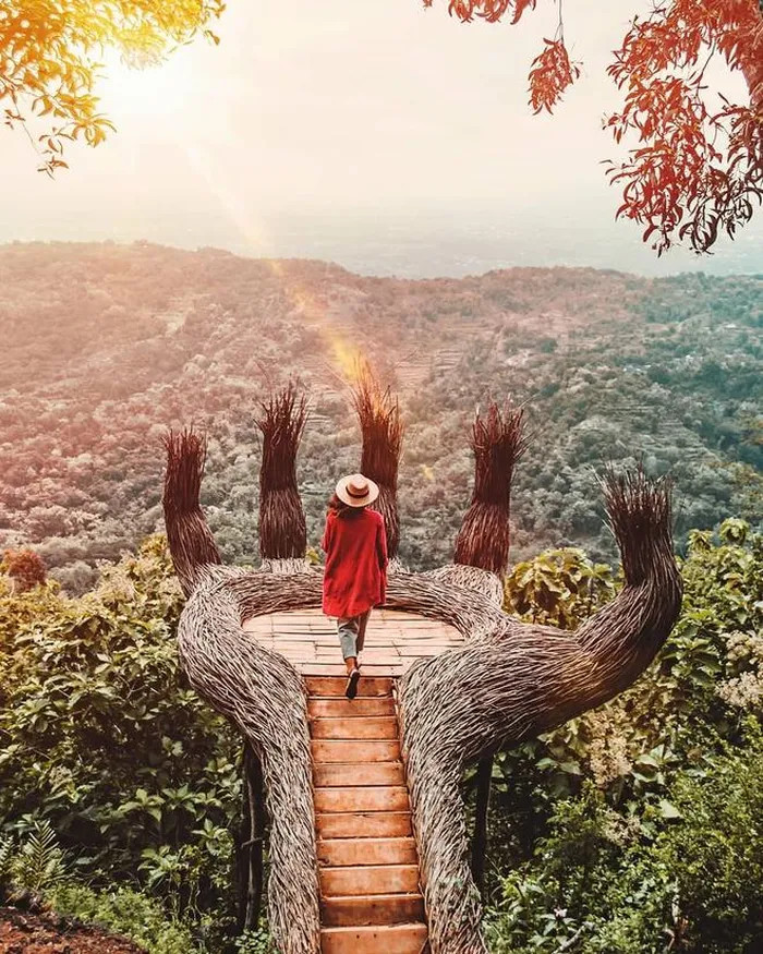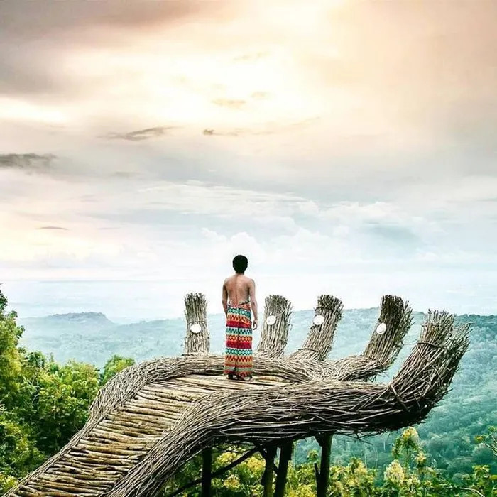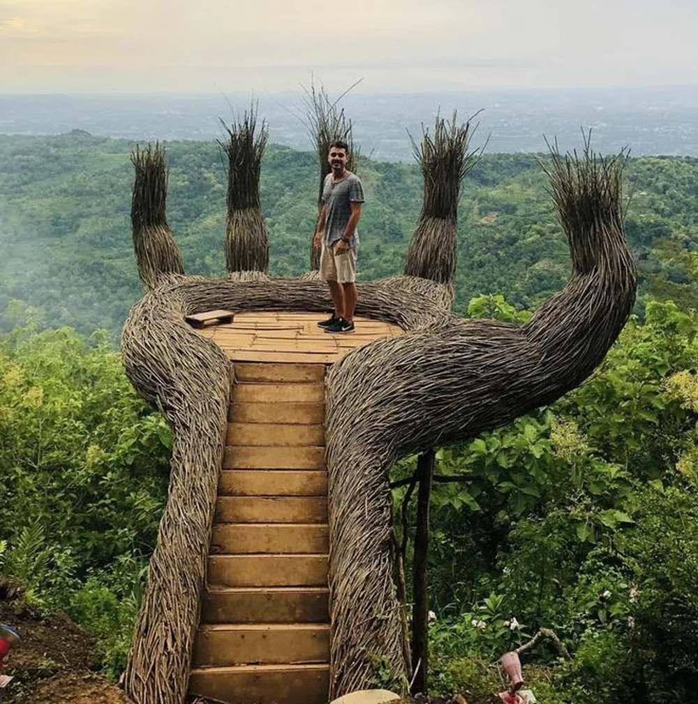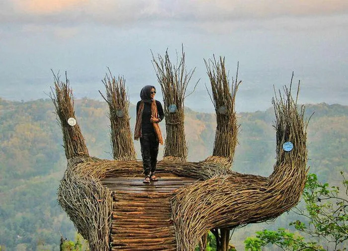 Bàn tay khổng lồ phiên bản Indonesia nằm ở giữa rừng Pinus Pengger Bantul. Mặc dù có vẻ ngoài thô cứng hơn so với những phiên bản khác nhưng bàn tay này lại thu hút rất đông khách du lịch nhờ khung cảnh xanh mát của núi rừng.