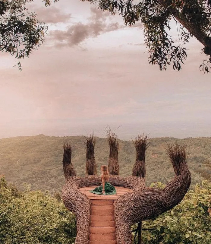 Chính vì vậy mà từ thiết kế đến khung cảnh xung quanh đều mang nét hoang dã, tự nhiên. Bàn tay được làm nên từ những cành cây kết nối với nhau tạo thành, ở giữa lòng bàn tay được lát gỗ để du khách có thể đứng check-in. Bàn tay được đặt ở độ cao vừa đủ để du khách có thể chiêm ngưỡng toàn bộ khu rừng.