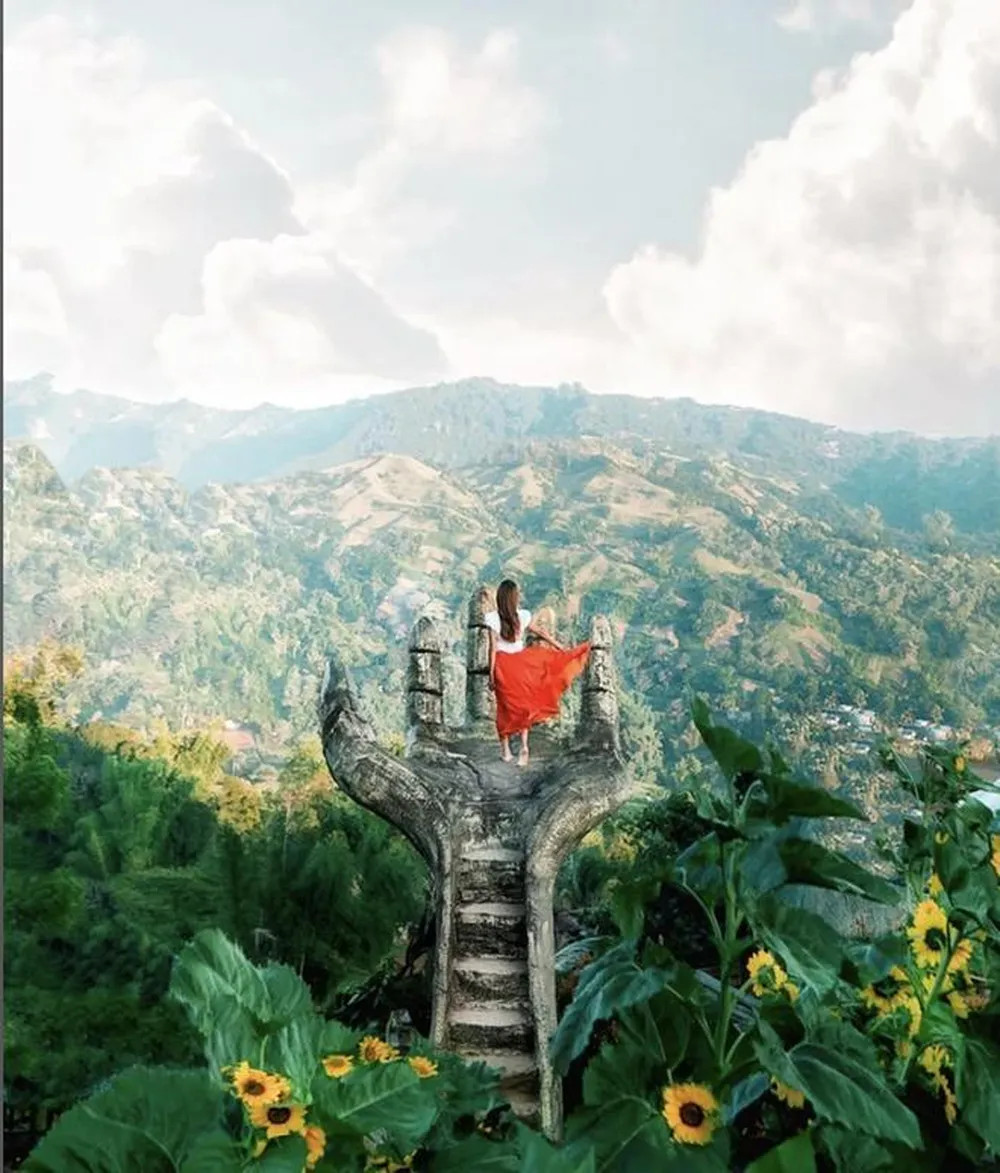 Đứng trên bàn tay này du khách có thể phóng tầm mắt ra toàn bộ khung cảnh Sirao Flower Garden cũng như ngắm nhìn dãy núi Barangay Sirao hùng vĩ. Phía dưới bàn tay một vườn hoa đủ màu sắc bao quanh tạo nên khung cảnh đẹp như trong truyện cổ tích.