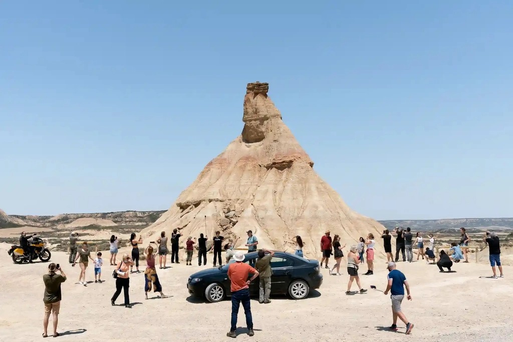 Sa mạc Bardenas Reales (Tây Ban Nha) được gắn thẻ 96.200 lần và chụp vào tháng 6/2021. “Bardenas Reales là một cảnh quan bán sa mạc ở phía bắc Tây Ban Nha. Sự hình thành đá Castildetierra là đặc điểm nổi bật trong nhiều bức ảnh selfie trên Instagram. Tôi đã đưa bản thân vào bức ảnh này vì dự án cũng là cách để tôi phản ánh lại những hoạt động của mình với tư cách một khách du lịch và nhiếp ảnh gia”, cô chia sẻ. Ảnh: Natacha de Mahieu.