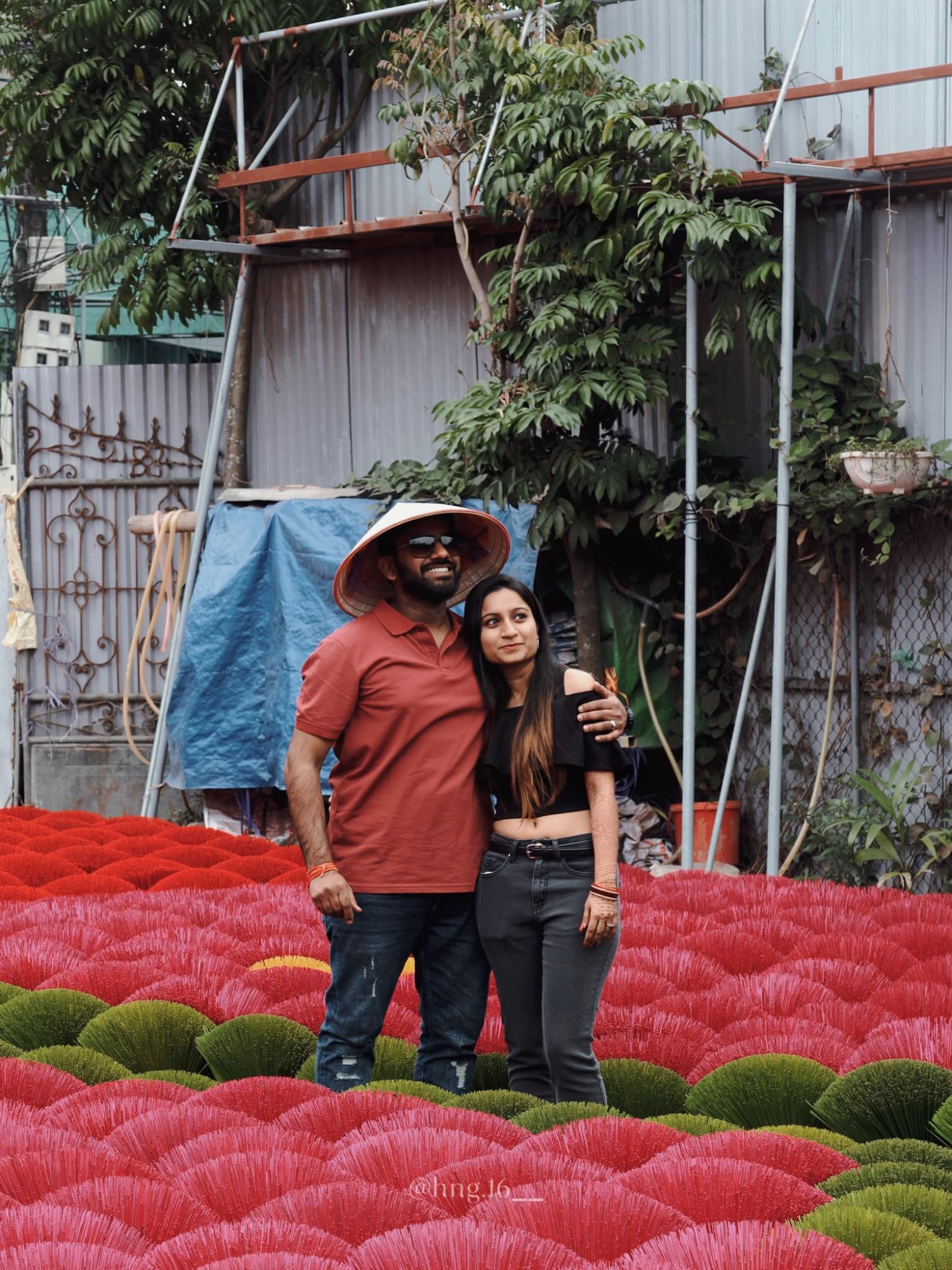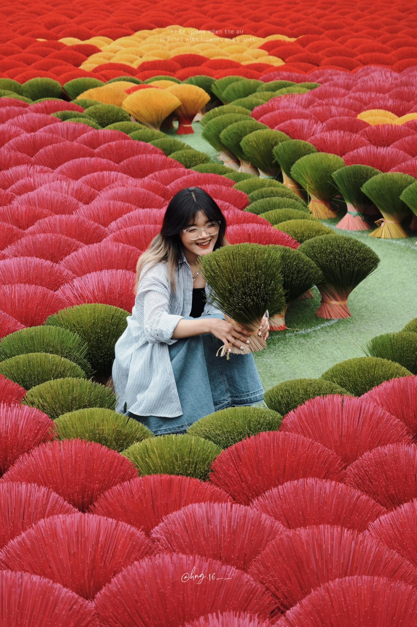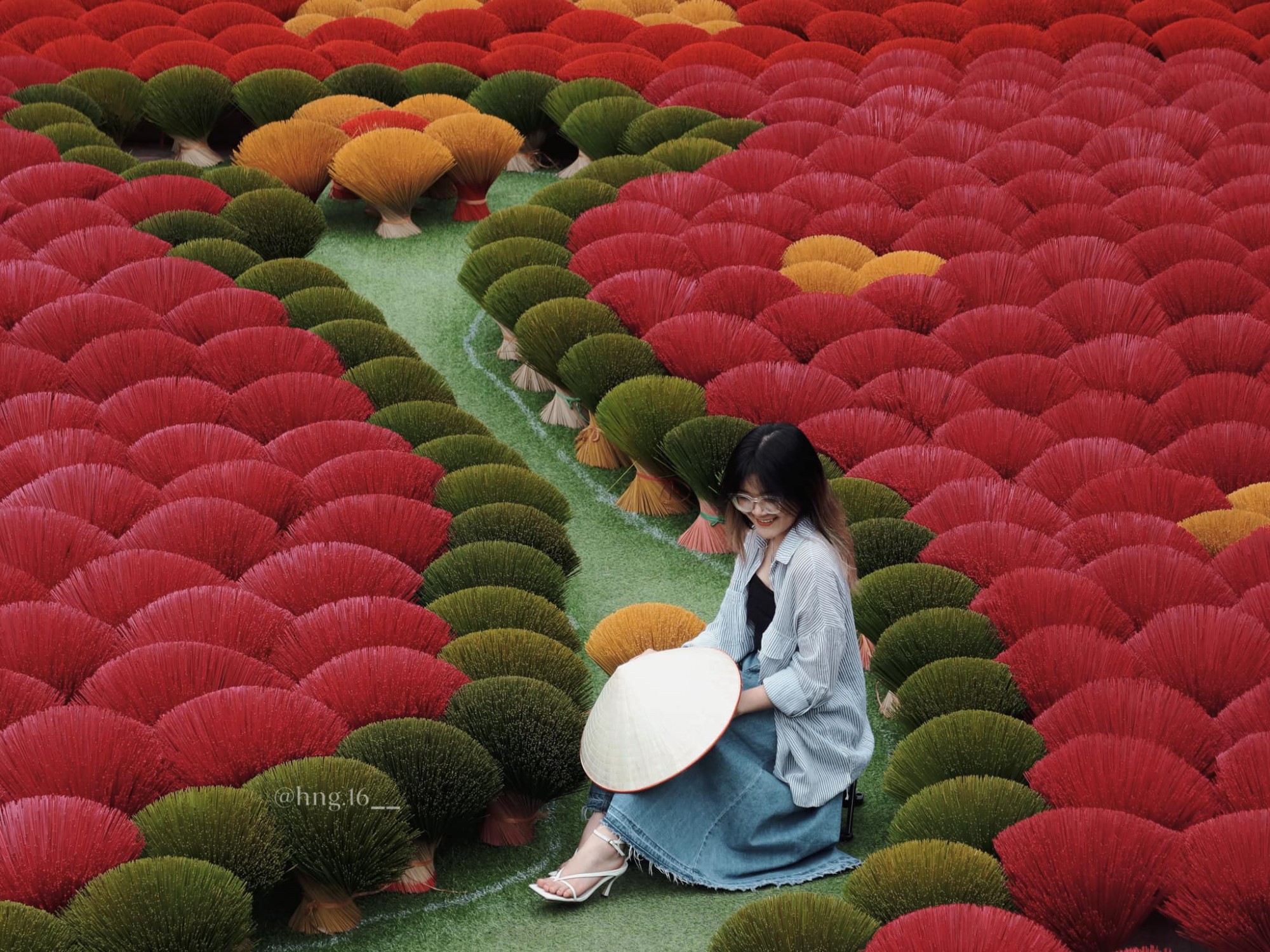 “Các cô chú ở đây thường dọn hương khá sớm, khoảng 4-4:30 chiều. Bạn nên ghé thăm sớm hơn chút để có nhiều thời gian chụp ảnh hơn. Ngoài ra, bạn có thể chọn các bộ váy, áo dài theo tông màu kem, be sáng hay xanh và lựa tới làng hương vào những ngày nhiều nắng để lên hình nổi bật, ấn tượng hơn”, nữ travel blogger cho hay (Ảnh: Hoài Nguyễn).