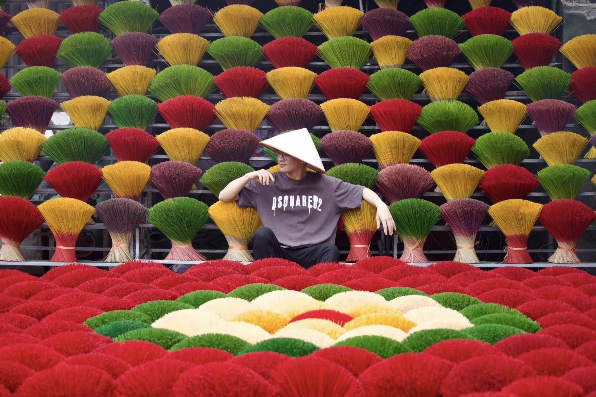Ngôi làng có nghề truyền thống hơn 100 năm gây ấn tượng với du khách ngay từ lần đầu tiên bởi những bó hương tạo hình đẹp mắt, không gian tràn ngập màu sắc rực rỡ như xanh, đỏ, vàng,…