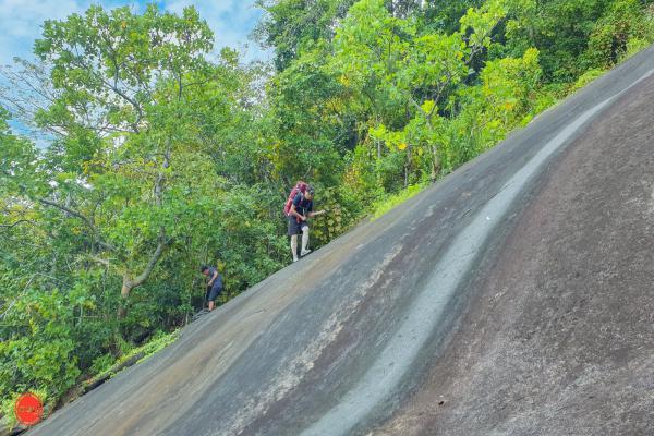 Toàn ảnh bãi Đá Bàn nhìn từ trên cao, hành trình tiếp theo của nhóm leo núi là chinh phục con dốc 700Bãi Đá Bàn là một địa điểm lý tưởng để cắm trại với một phiến đá lớn, bằng phẳng, tầm nhìn rất đẹp và thoáng để ngắm trời mây, cây lá và TP Tây Ninh phía xa. Người leo núi cung đường này thường khởi hành vào chiều tối, sau khoảng 2 giờ leo thì đến được bãi Đá Bàn nghỉ ngơi qua đêm, sáng hôm sau đón bình minh và tiếp tục hành trình chinh phục con dốc 700 huyền thoại.