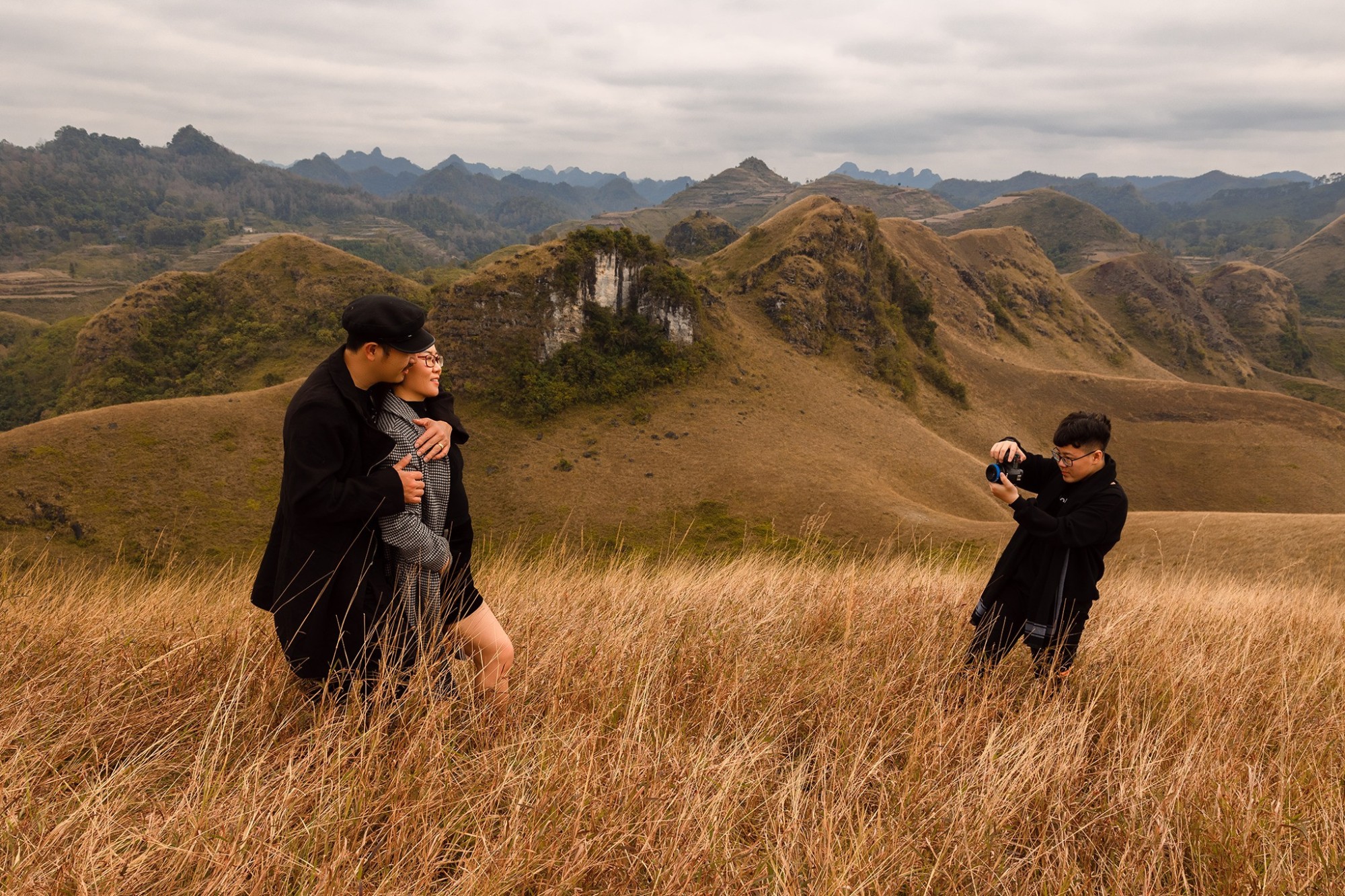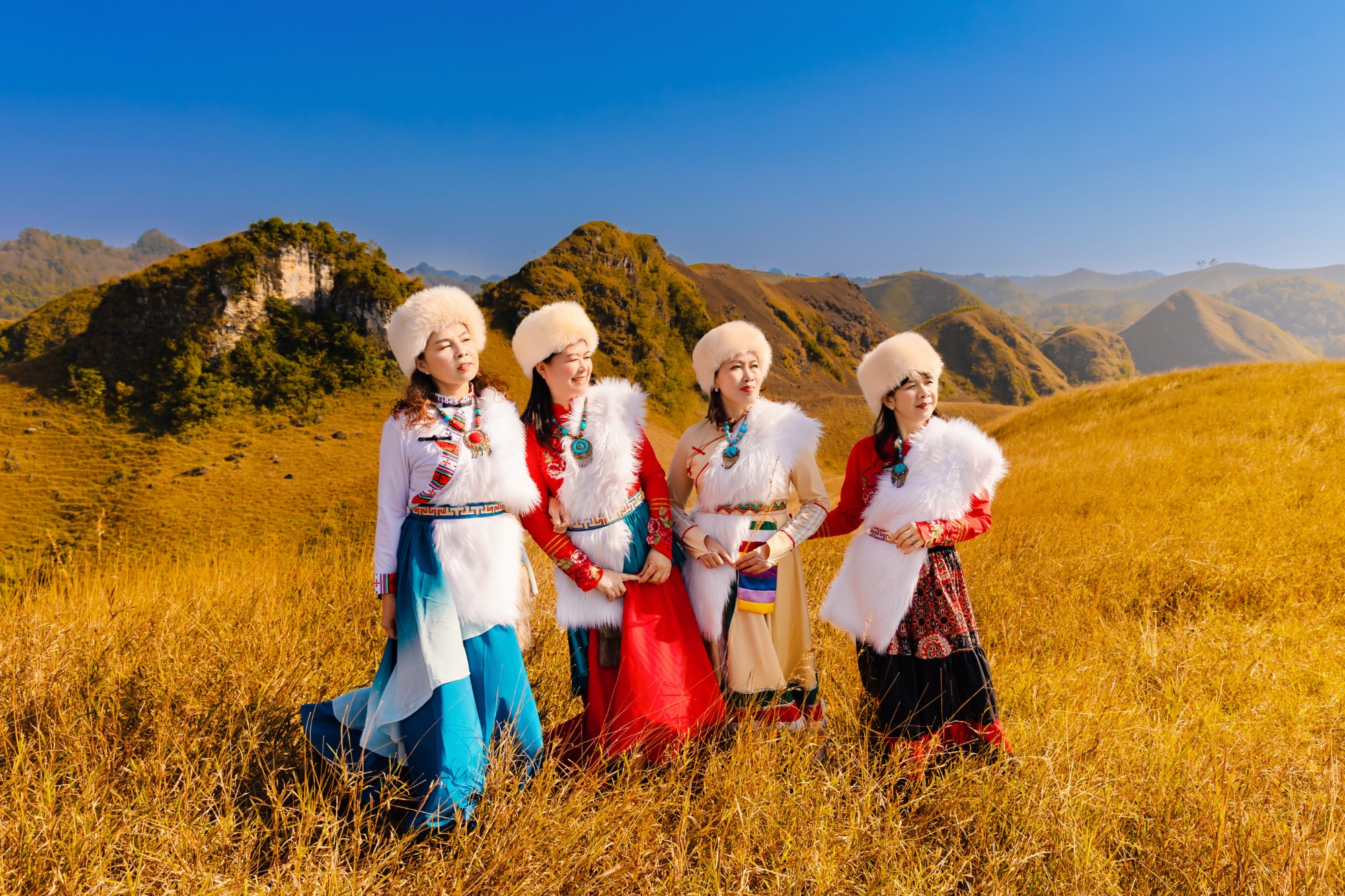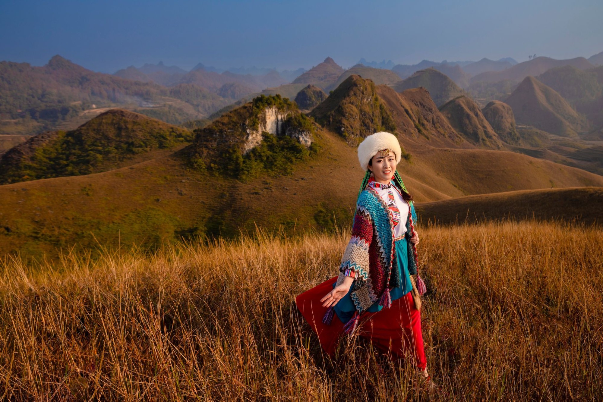Để phù hợp bối cảnh, du khách có thể chọn những bộ váy nhẹ nhàng, màu sắc bắt mắt hoặc đồ đông phối hợp giữa áo khoác dạ, khăn, mũ len... Những màu sắc như trắng - đỏ, xanh, nâu cam dễ nổi bật giữa đồi cỏ. "Bạn nên hạn chế đồ màu vàng vì trùng lẫn với màu đồi cỏ", anh Dương cho biết.