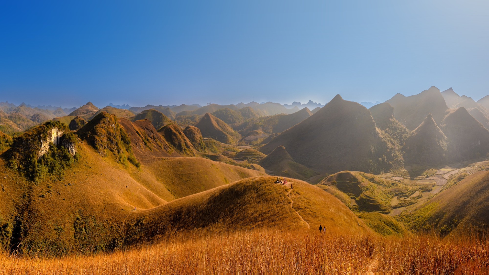 Đồi cỏ cháy Ba Quáng (đồi cỏ Vinh Quý) tại Hạ Lang, Cao Bằng thu hút du khách tới chiêm ngưỡng, chụp ảnh, cắm trại... nhờ vẻ đẹp độc đáo, hoang sơ từ tháng 10 đến tháng 1 hàng năm.