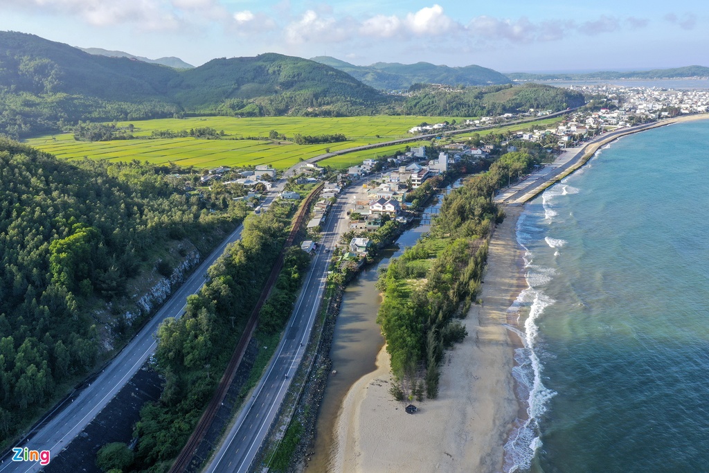Tuyến kè biển này gần sát với quốc lộ 1, đoạn gần Ga Sa Huỳnh ở thị xã Đức Phổ.