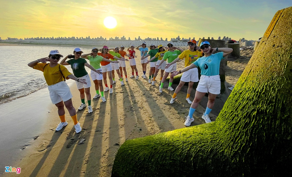 "Sau mùa biển động kéo dài, dưới tiết trời nắng ấm, các cấu kiện phá sóng nhuộm màu rêu xanh biếc tạo nên bức tranh độc đáo ven biển xã Nghĩa An, TP Quảng Ngãi. Chúng tôi đã có nhiều bức ảnh ấn tượng trong buổi bình minh nơi đây", Thúy Hạnh (ngụ TP Quảng Ngãi) chia sẻ.