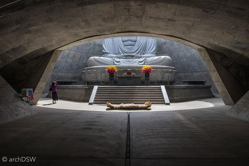“Không cách nào bạn có thể nhìn thấy toàn thân thể bức Đại Phật tượng này từ bên ngoài, chỉ có cách đi vào bên trong. Nếu bạn đến đây vào mùa Đông, đỉnh đầu tượng và quan cảnh sẽ được bao phủ bởi một màu trắng của tuyết, chỉ đến khi vào bên trong thì mới nhận ra sự tuyệt vời. Đằng sau sự ẩn giấy ấy chính là sức sáng tạo tỏa sáng của công trình”, Ando nói.